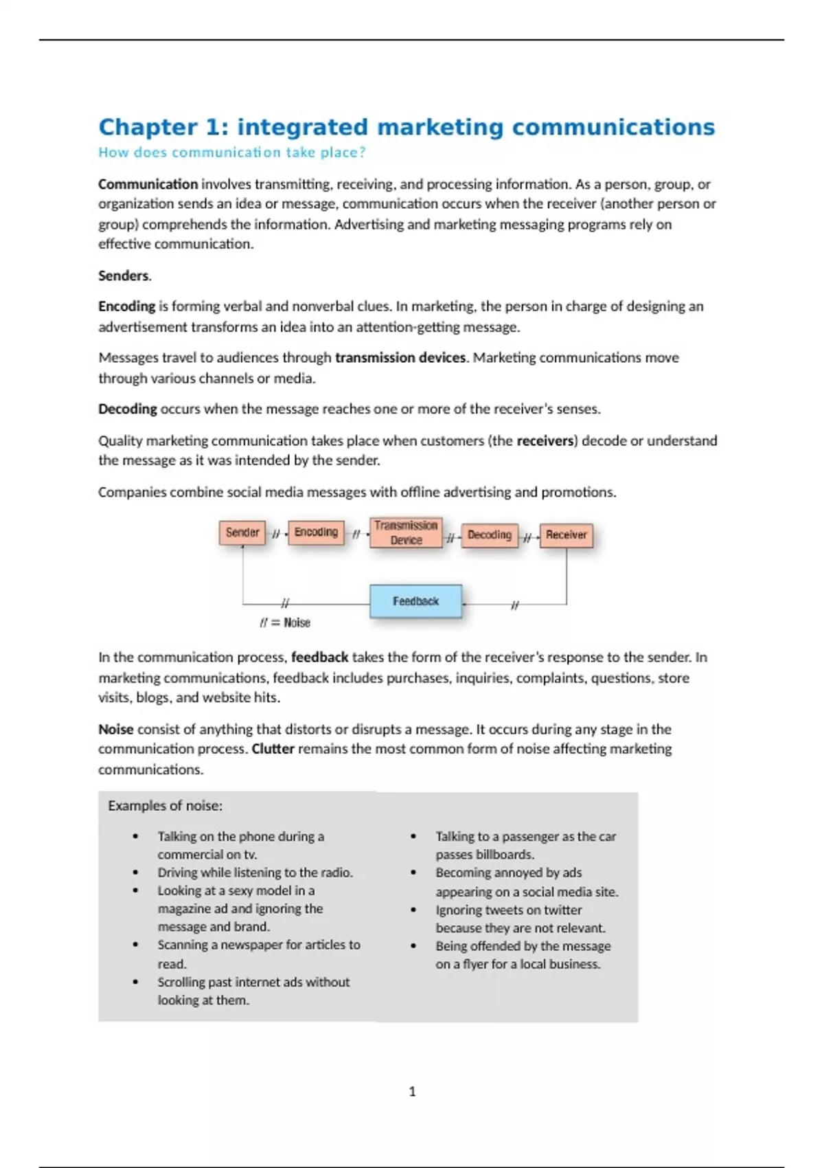 Summary of Chapter 1 of Intergrated Advertising, Promotion, and Marketing Communications. Made by a first year Communication student at the HAN Arnhem.