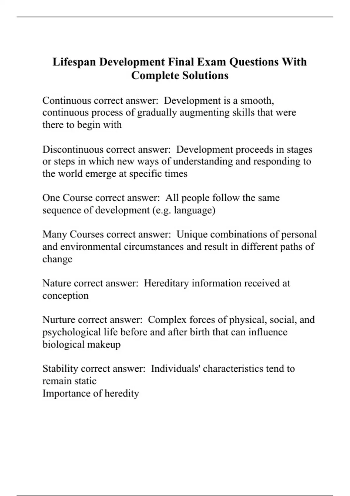 Lifespan Development Final Exam Questions With Complete Solutions