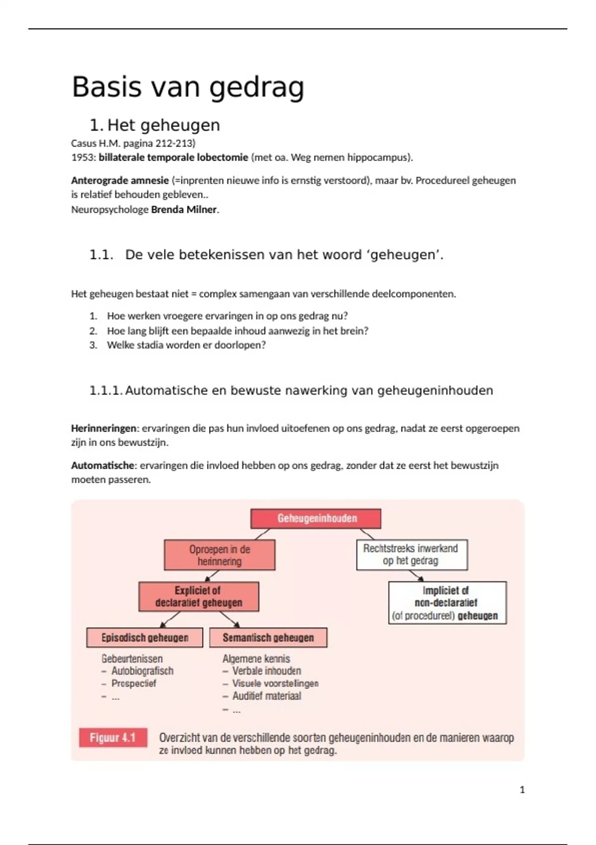 , 1.1.1.1. Expliciete en impliciete geheugenprocessen