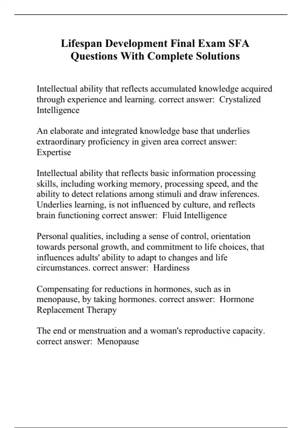 Lifespan Development Final Exam SFA Questions With Complete Solutions