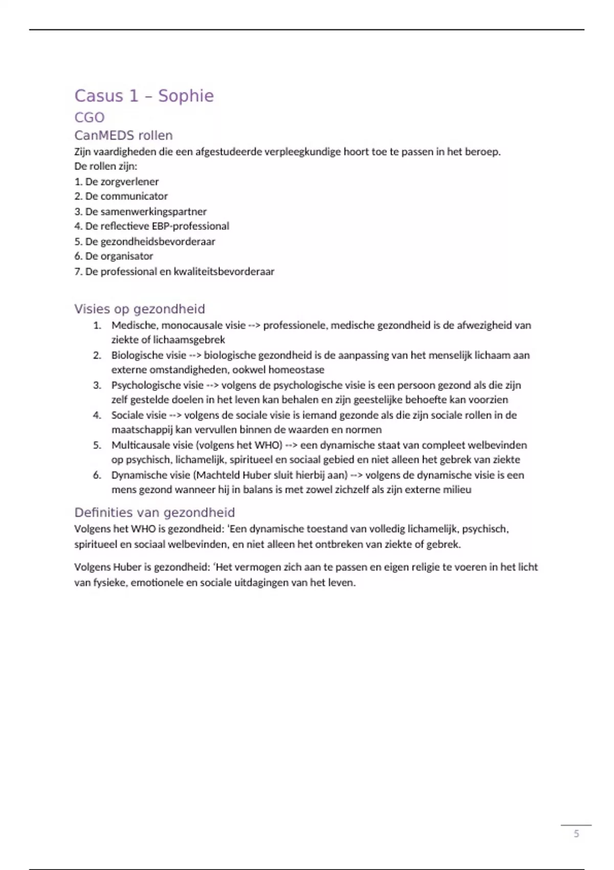 5. Multicausale visie (volgens het WHO) --> een dynamische staat van compleet welbevinden