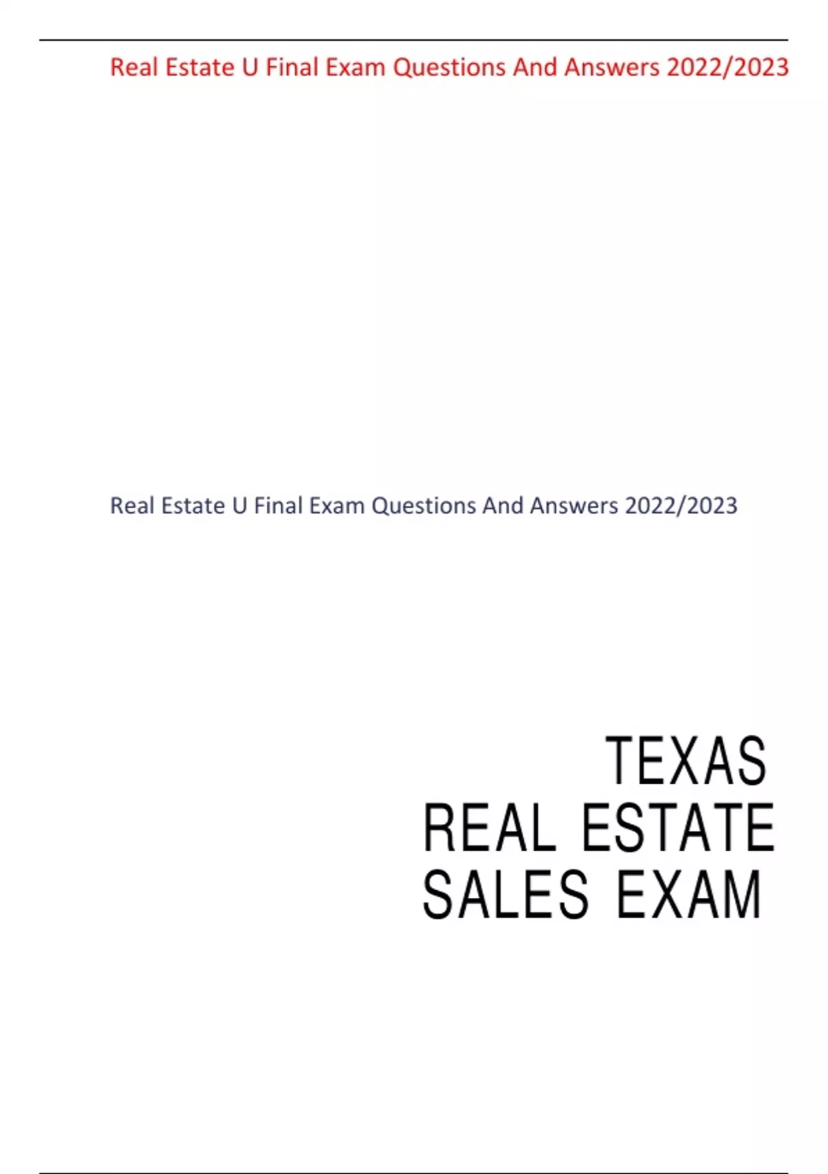 Real Estate U Final Exam Questions And Answers 2022/2023