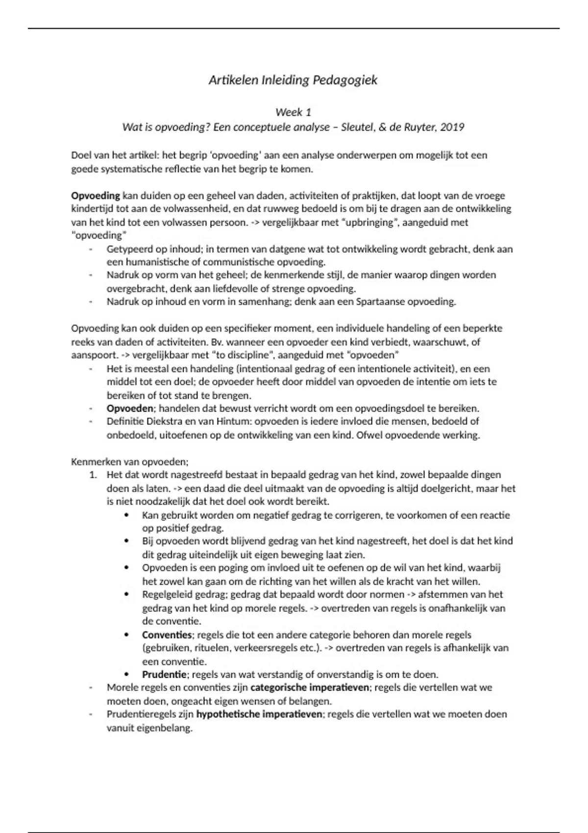 Artikelen Inleiding Pedagogiek
