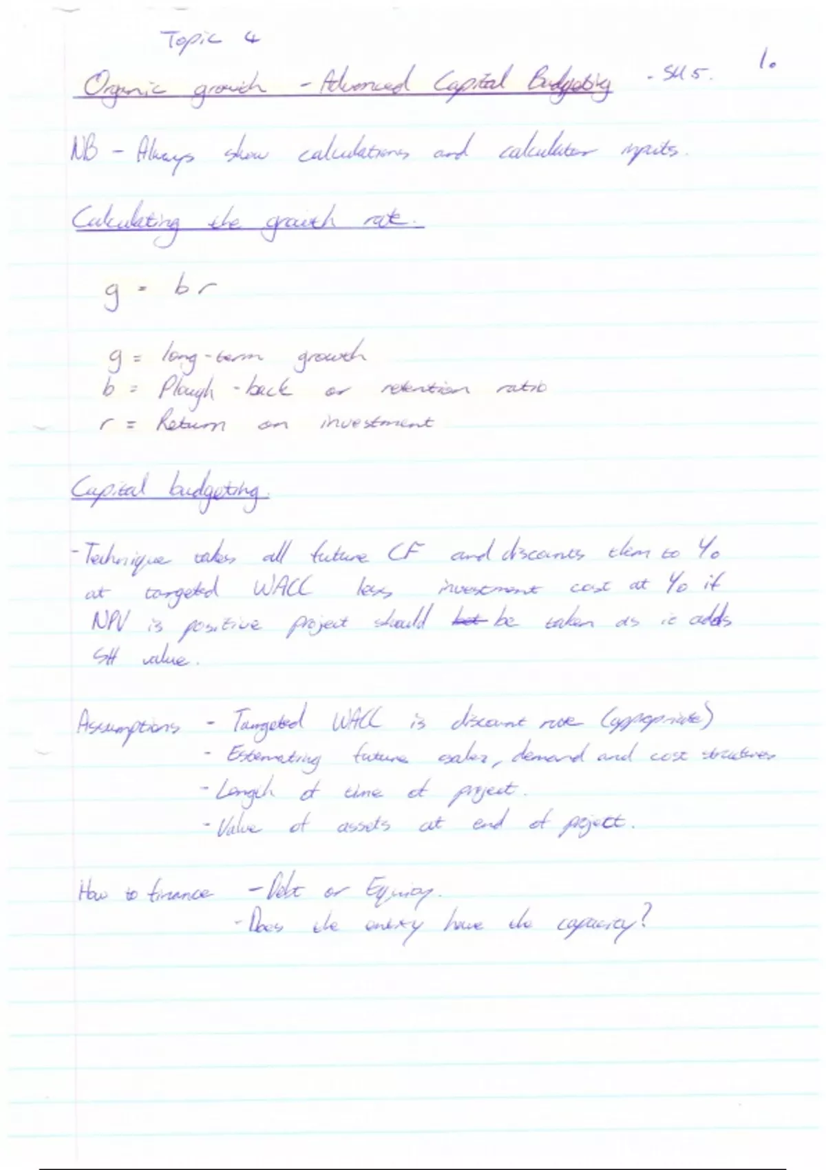 • This is handwritten summary notes covered the 4th Topic - "Organic Growth" of the UNISA study guide (Study unit 5 – “Advanced Capital Budgeting”). • No Q/A is included.