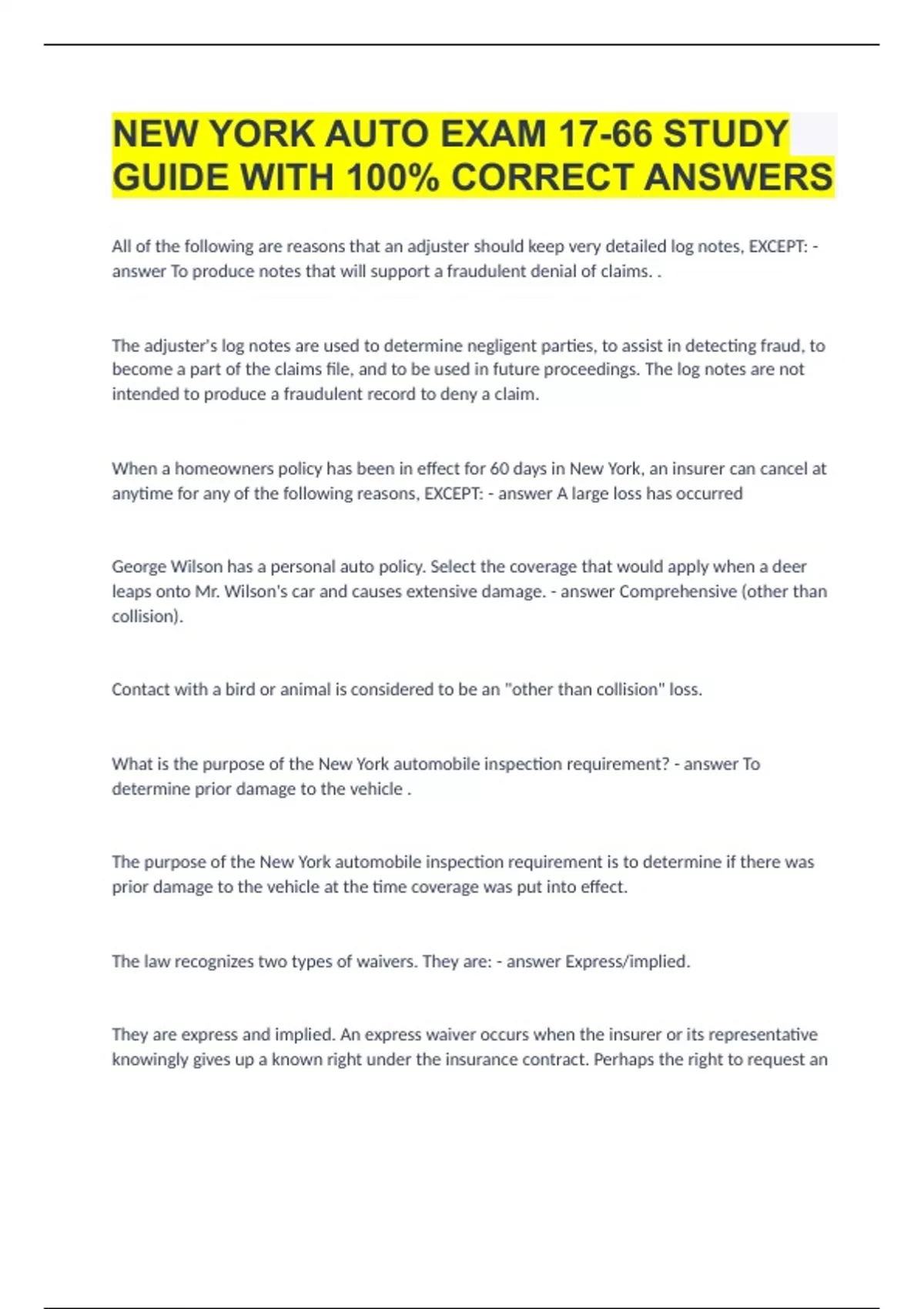 GUIDE WITH 100% CORRECT ANSWERS