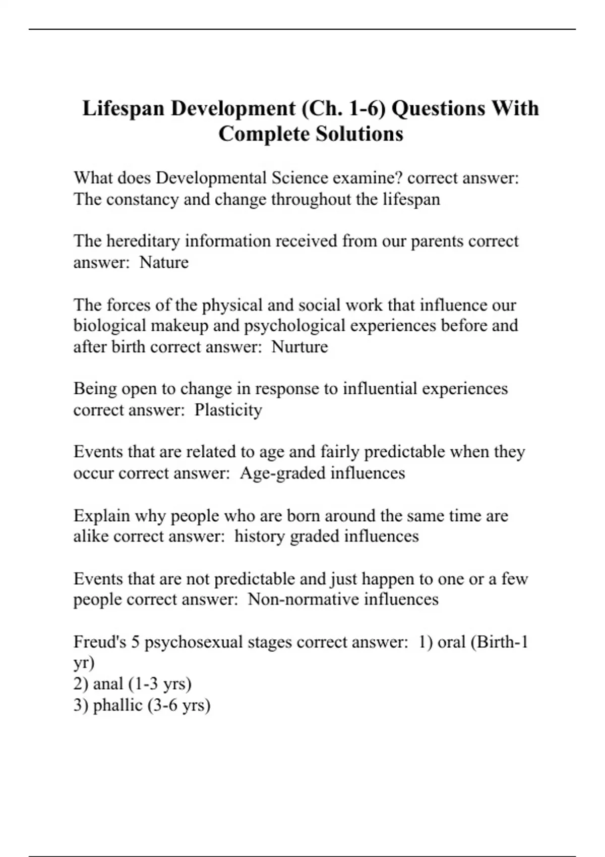 Lifespan Development (Ch. 1-6) Questions With Complete Solutions
