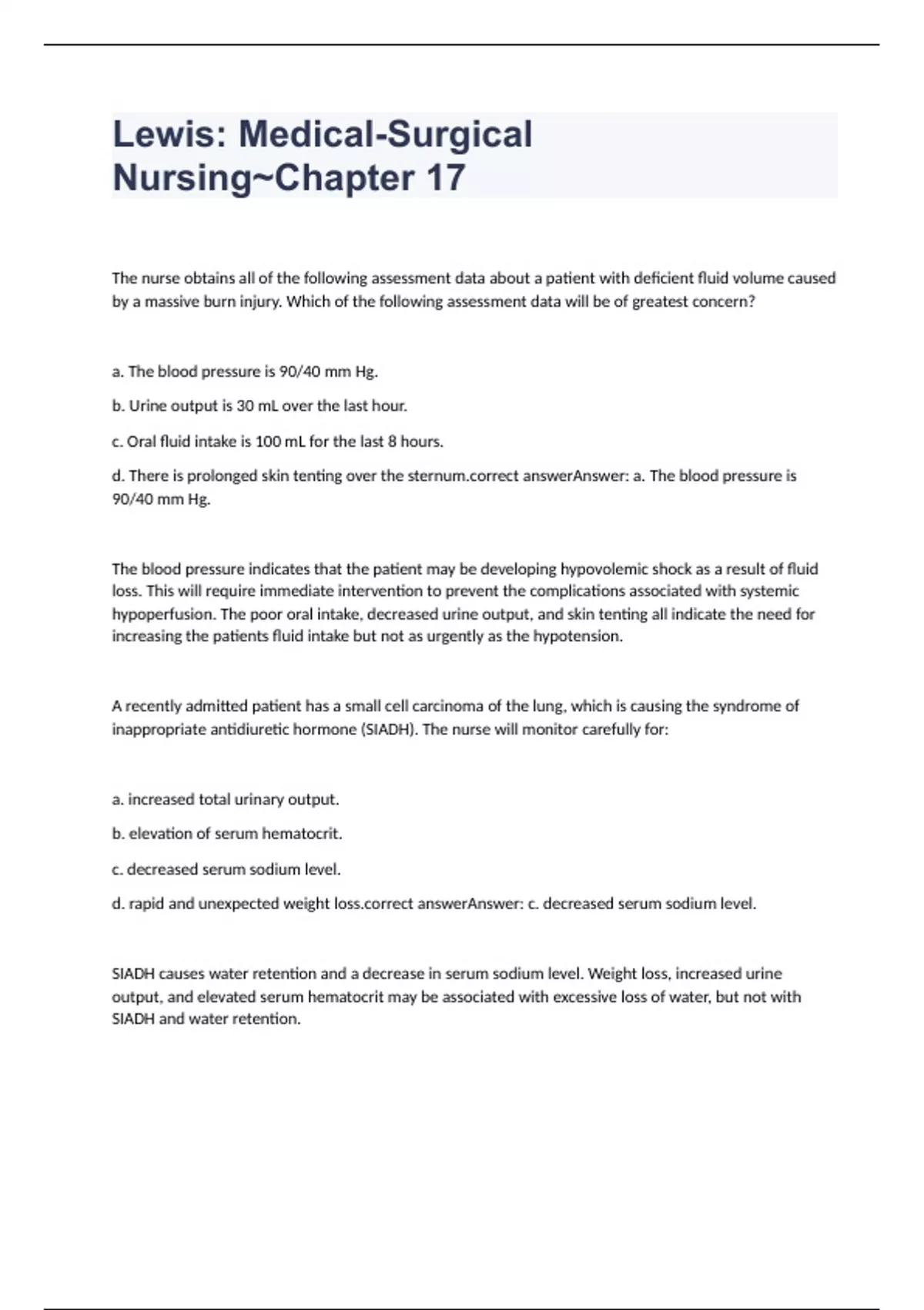 Lewis: Medical-Surgical Nursing~Chapter 17 questions with correct answers
