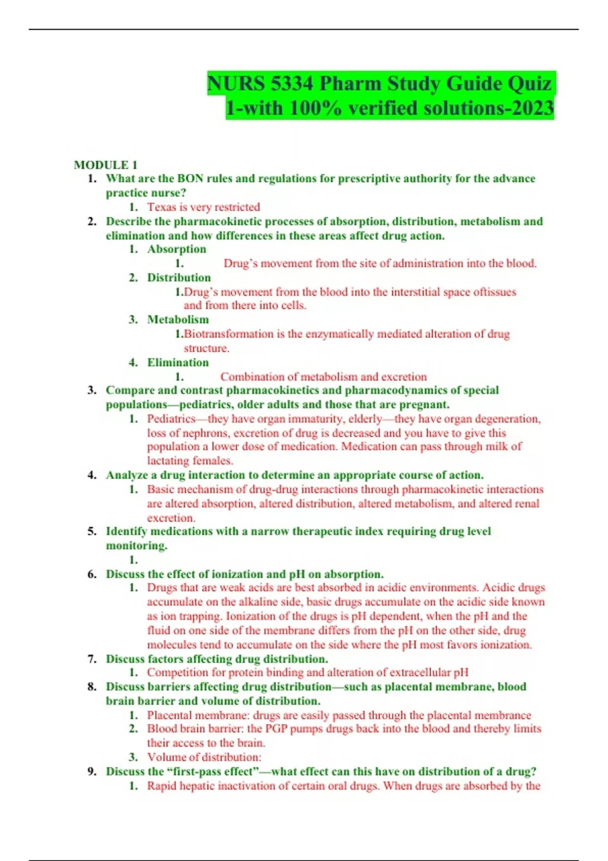 NURS 5334 Pharm Study Guide Quiz 1-with 100% verified solutions-2023