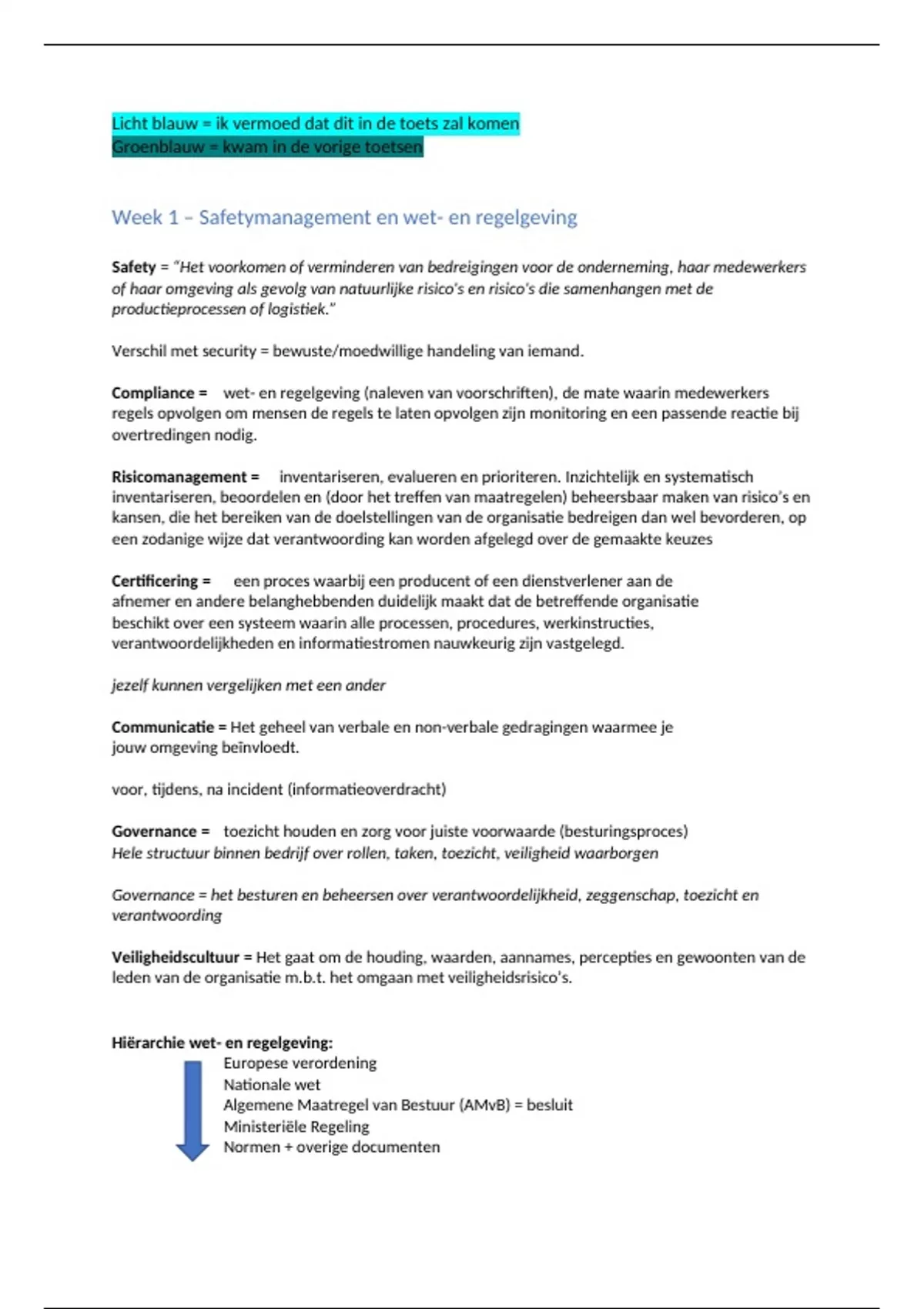 Week 1 – Safetymanagement en wet- en regelgeving
