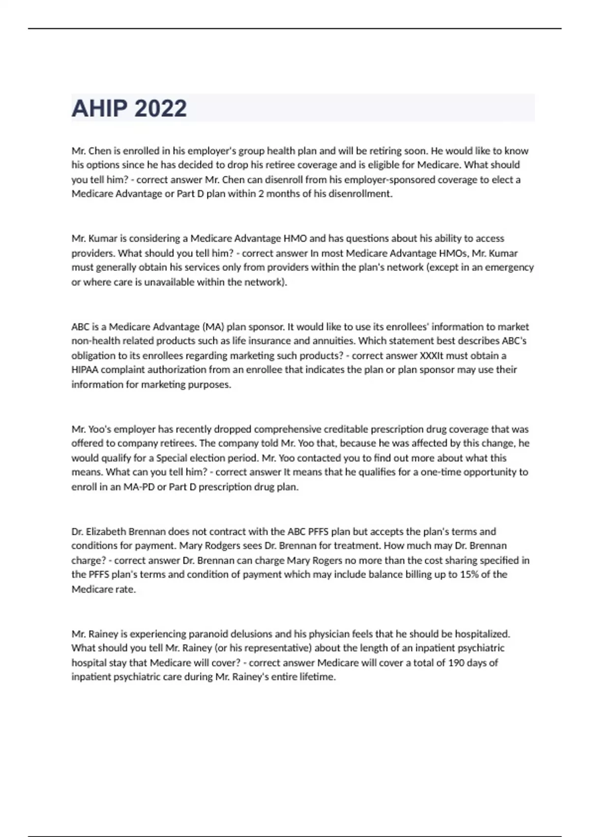 AHIP 2022 questions with complete solution (updated to pass)