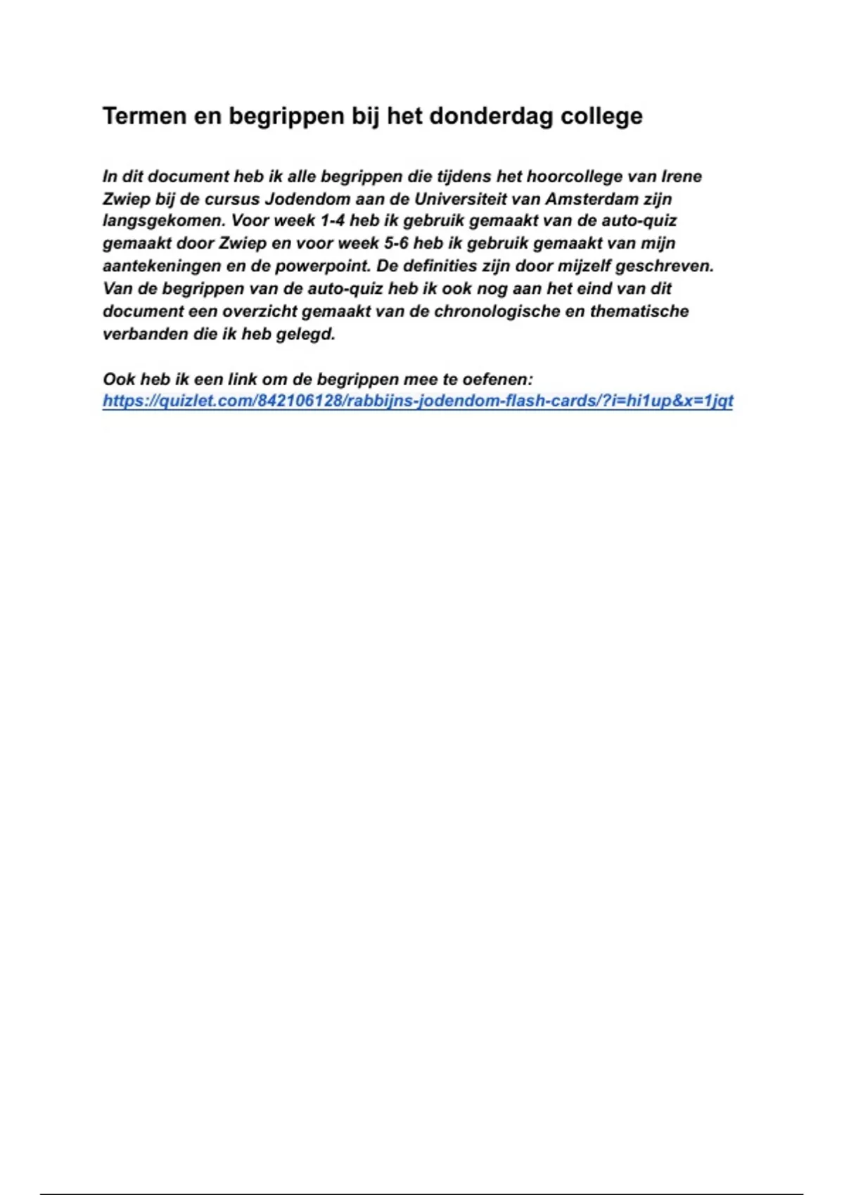 week 1-4 begrippen uit auto-quiz rabbijns jodendom van Zwiep: