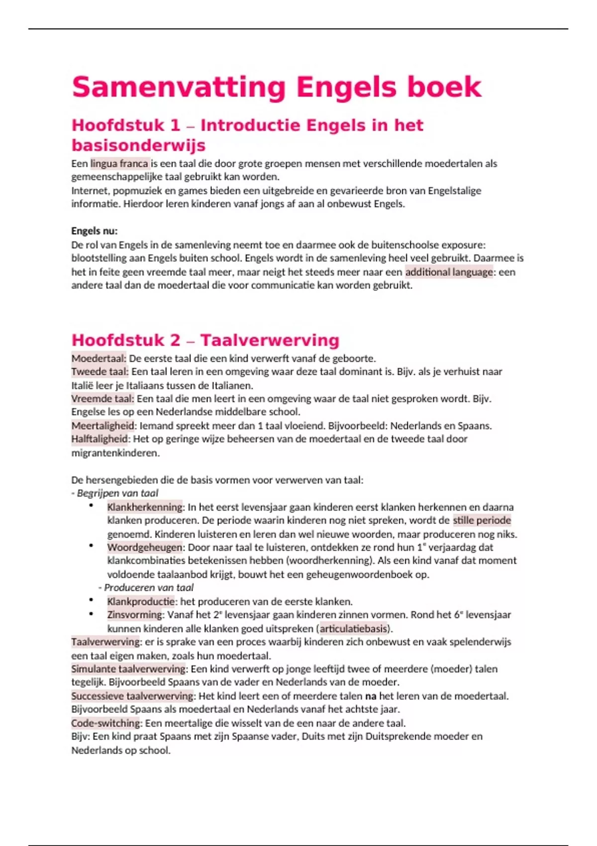 Samenvatting Engels in het basisonderwijs - Engels in het basisonderwijs (PAB.K2.01)