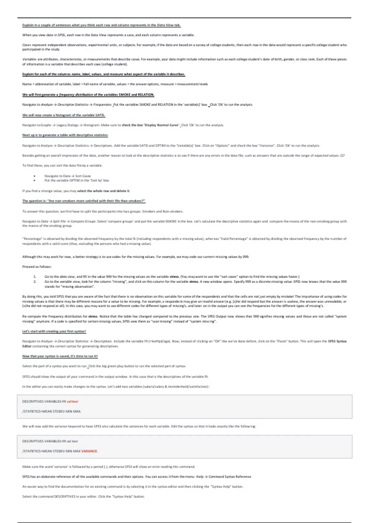 We will now add the variance keyword to have SPSS also calculate the variances for each variable. Edit the syntax so that it looks exactly like the follow ing: