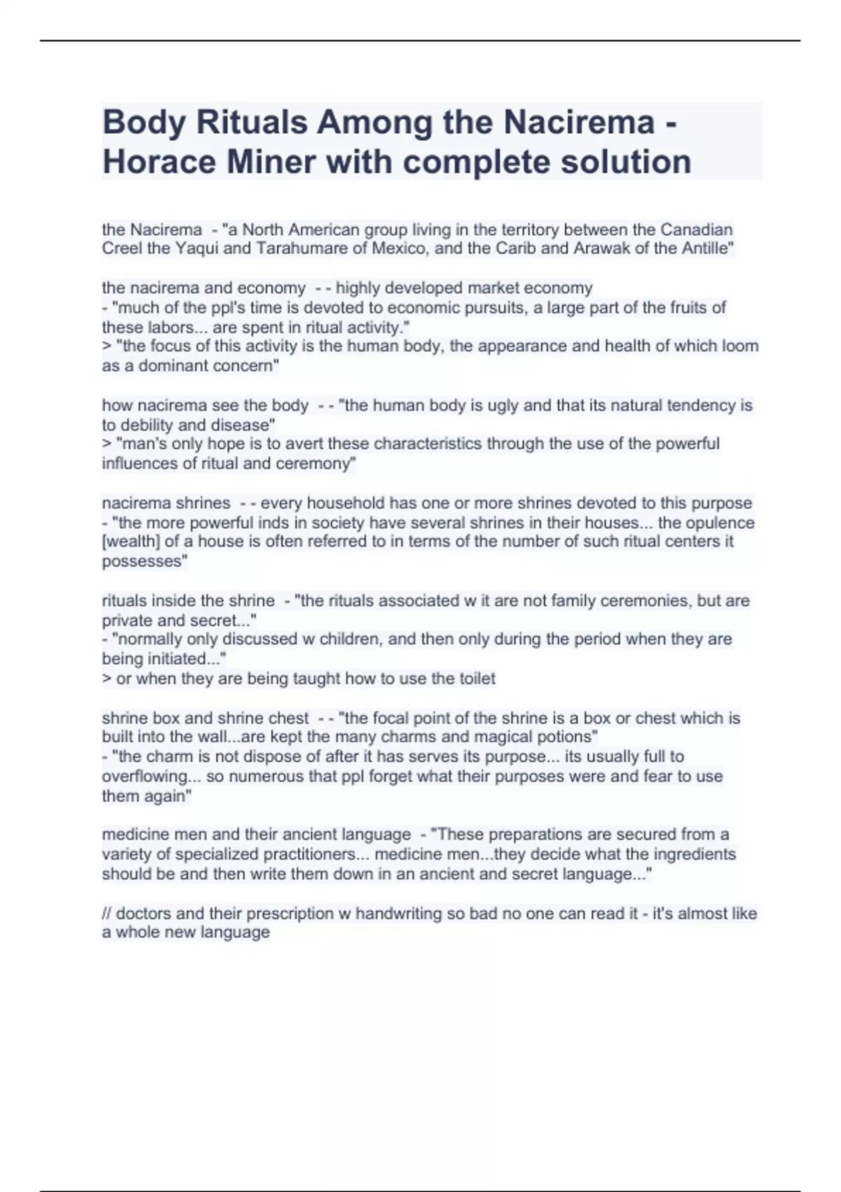 Body Rituals Among the Nacirema - Horace Miner with complete solution