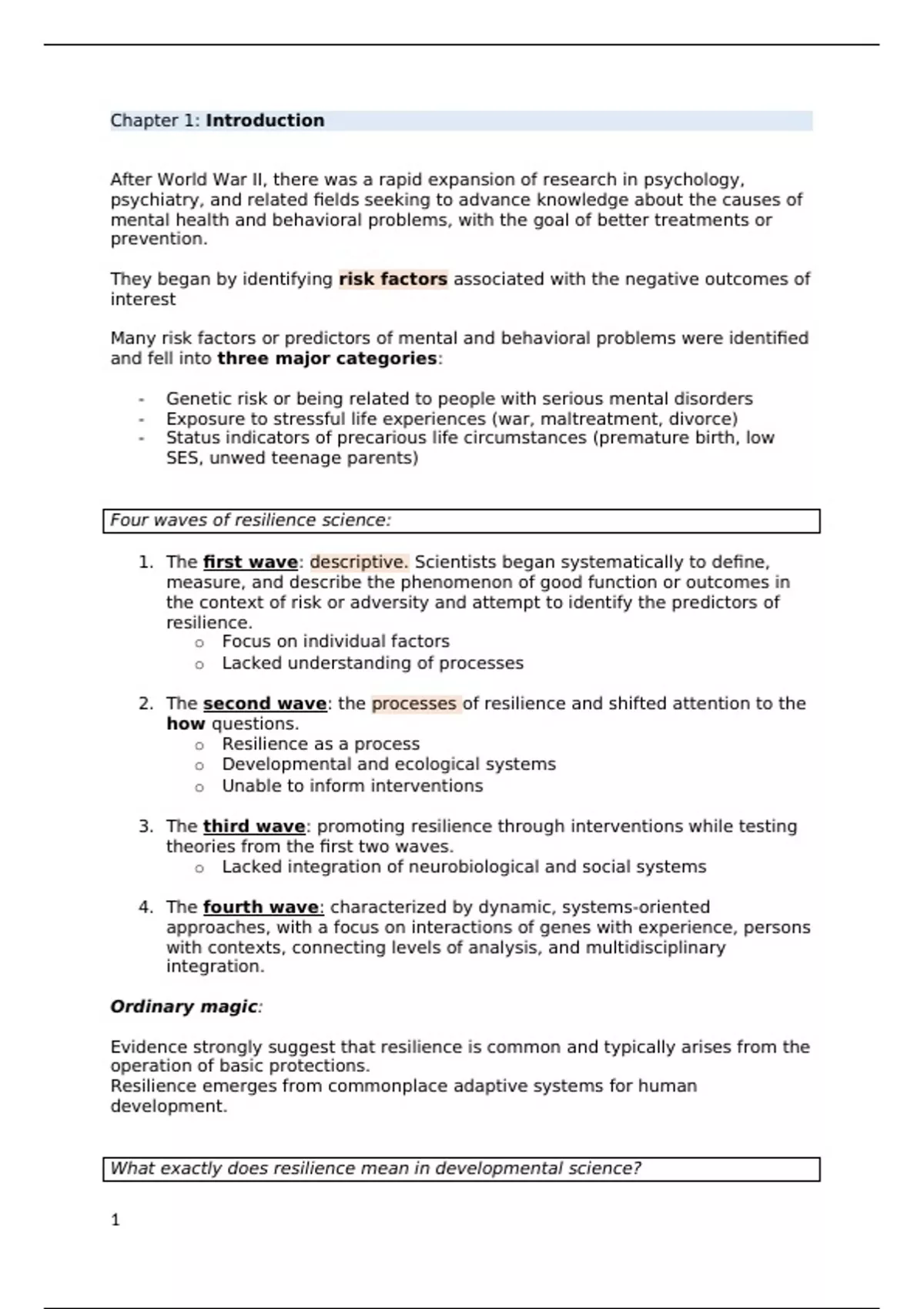 o Resilience as a process