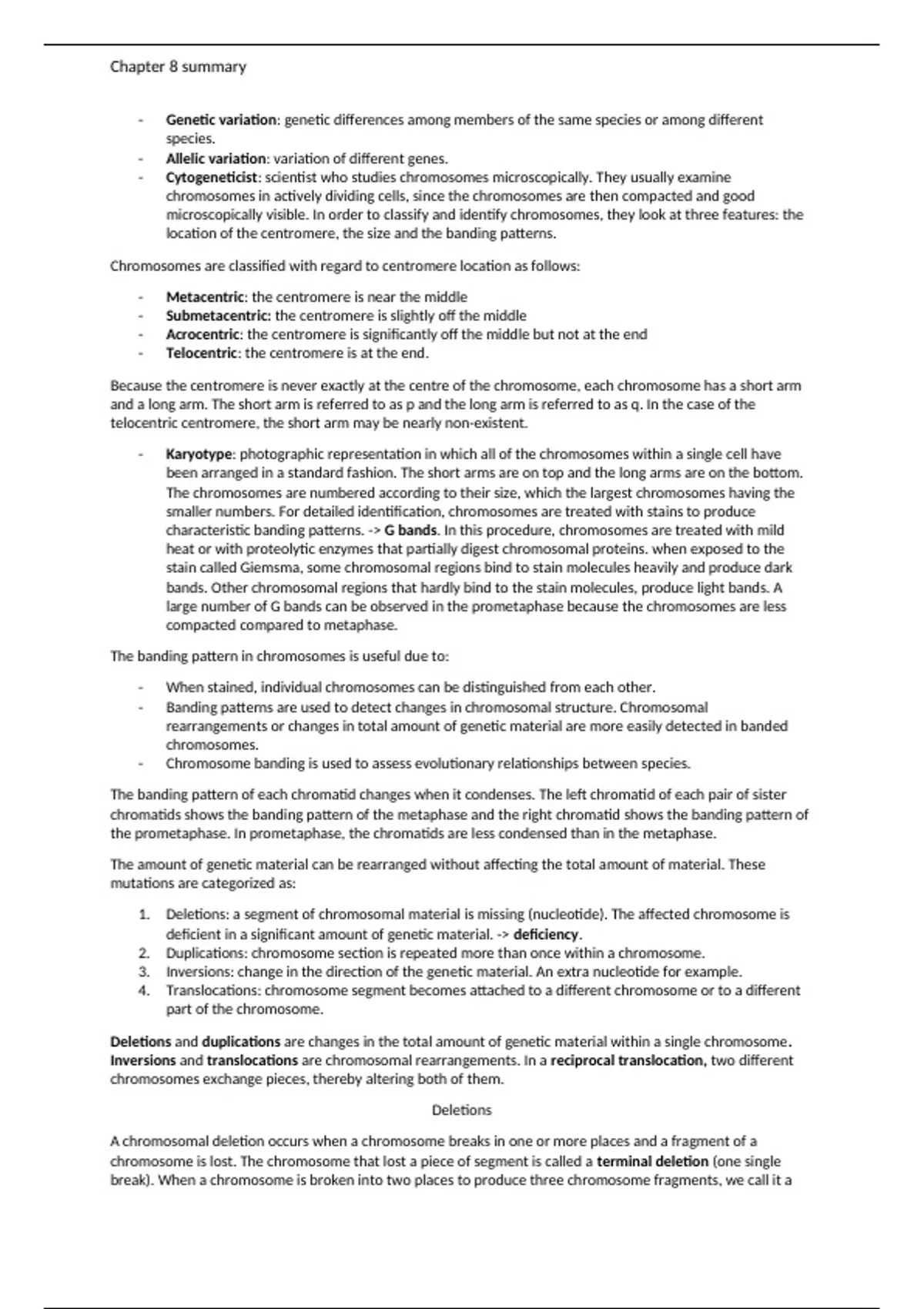 Genetics summary chapter 8 VU amsterdam