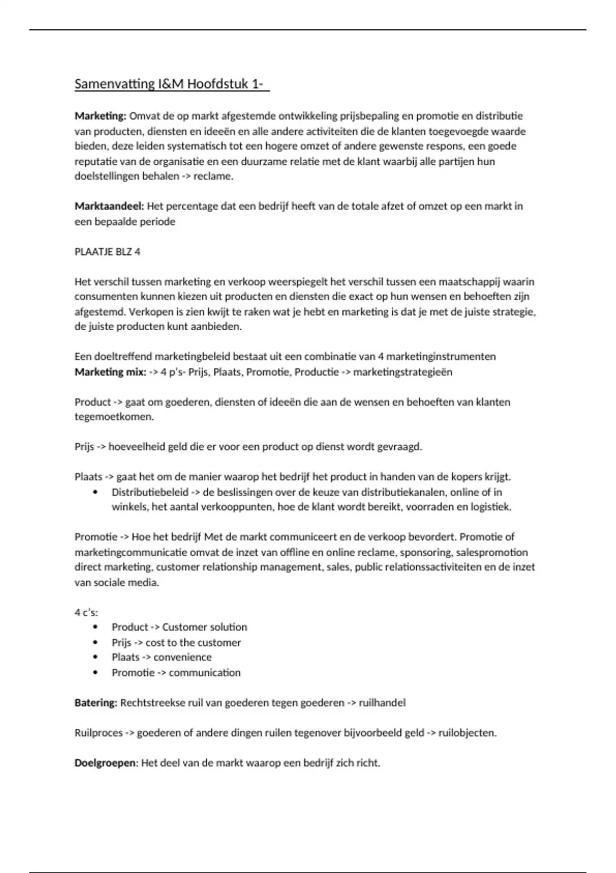 Samenvatting-marketing inleiding/ marketingmix/ innovate & market