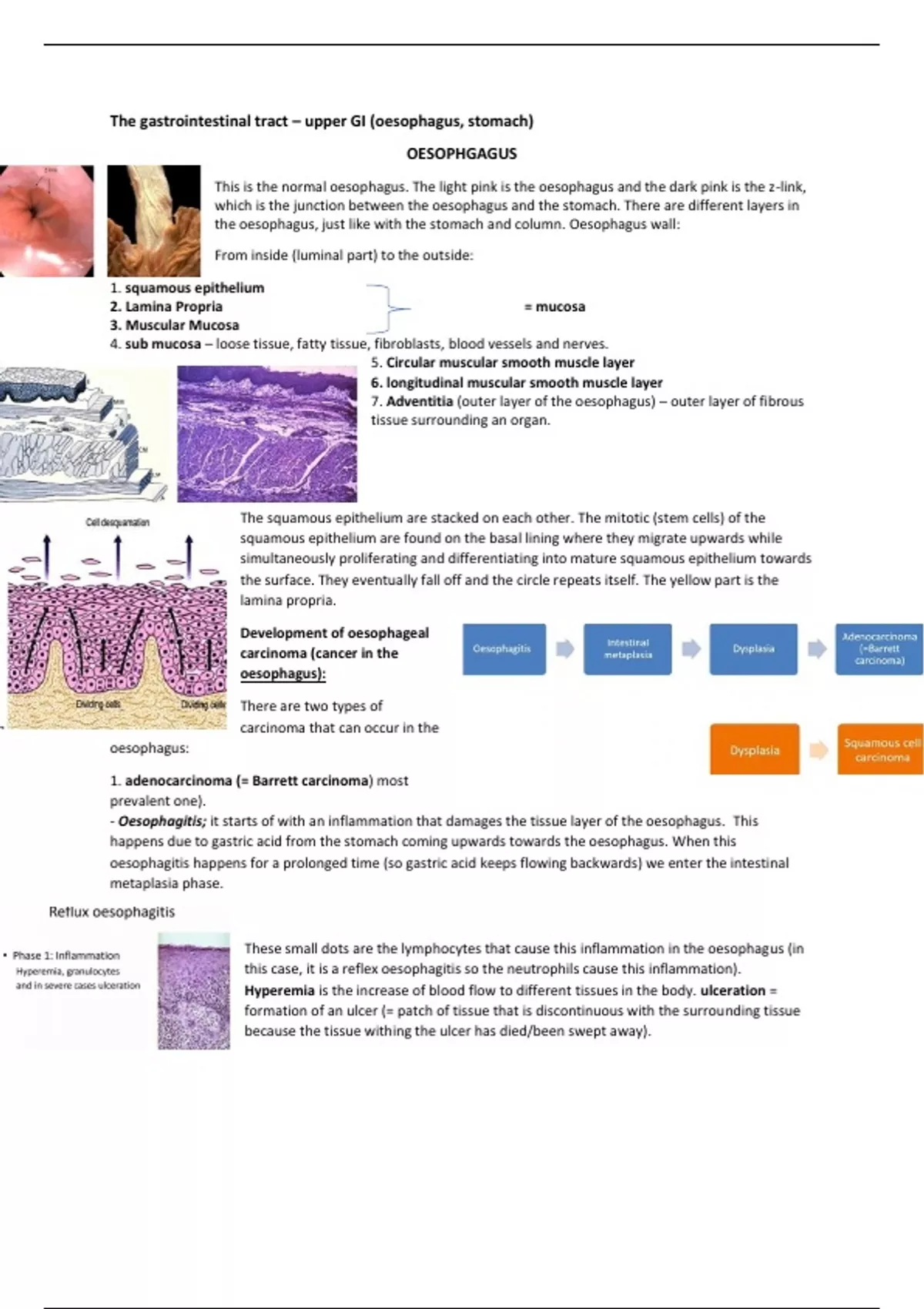 - Oesophagitis; it starts of with an inflammation that damages the tissue layer of the oesophagus. This