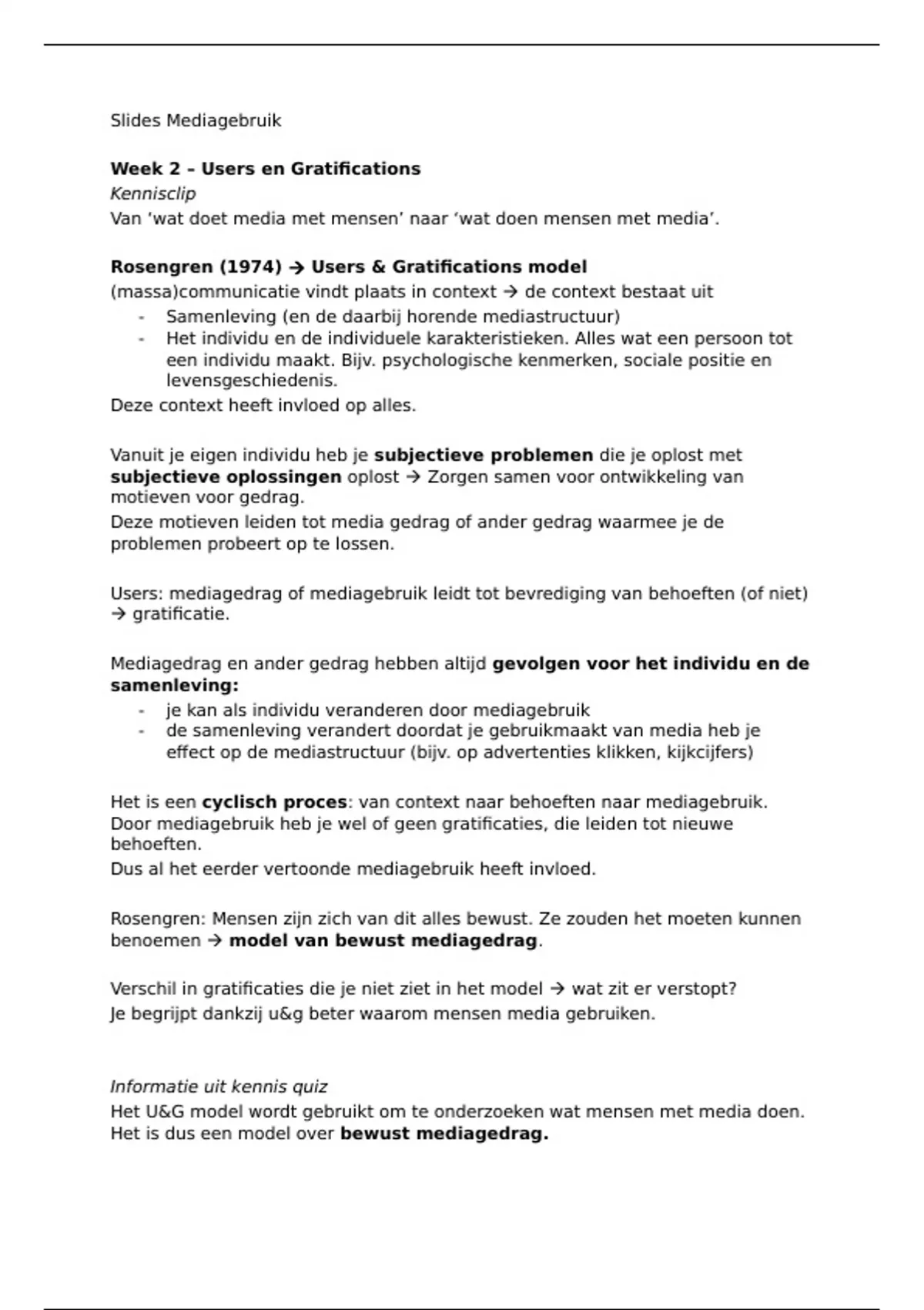 Door mediagebruik heb je wel of geen gratificaties, die leiden tot nieuwe