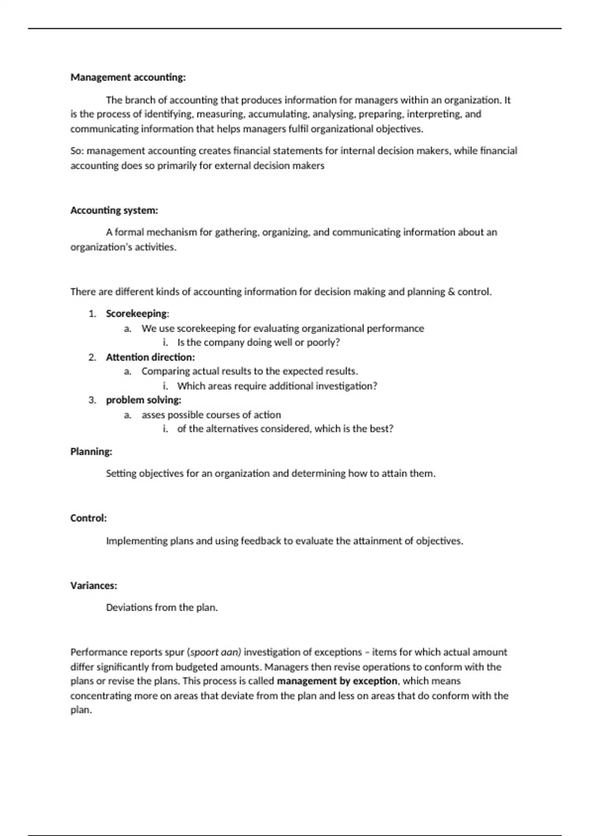plans or revise the plans. This process is called management by exception, which means