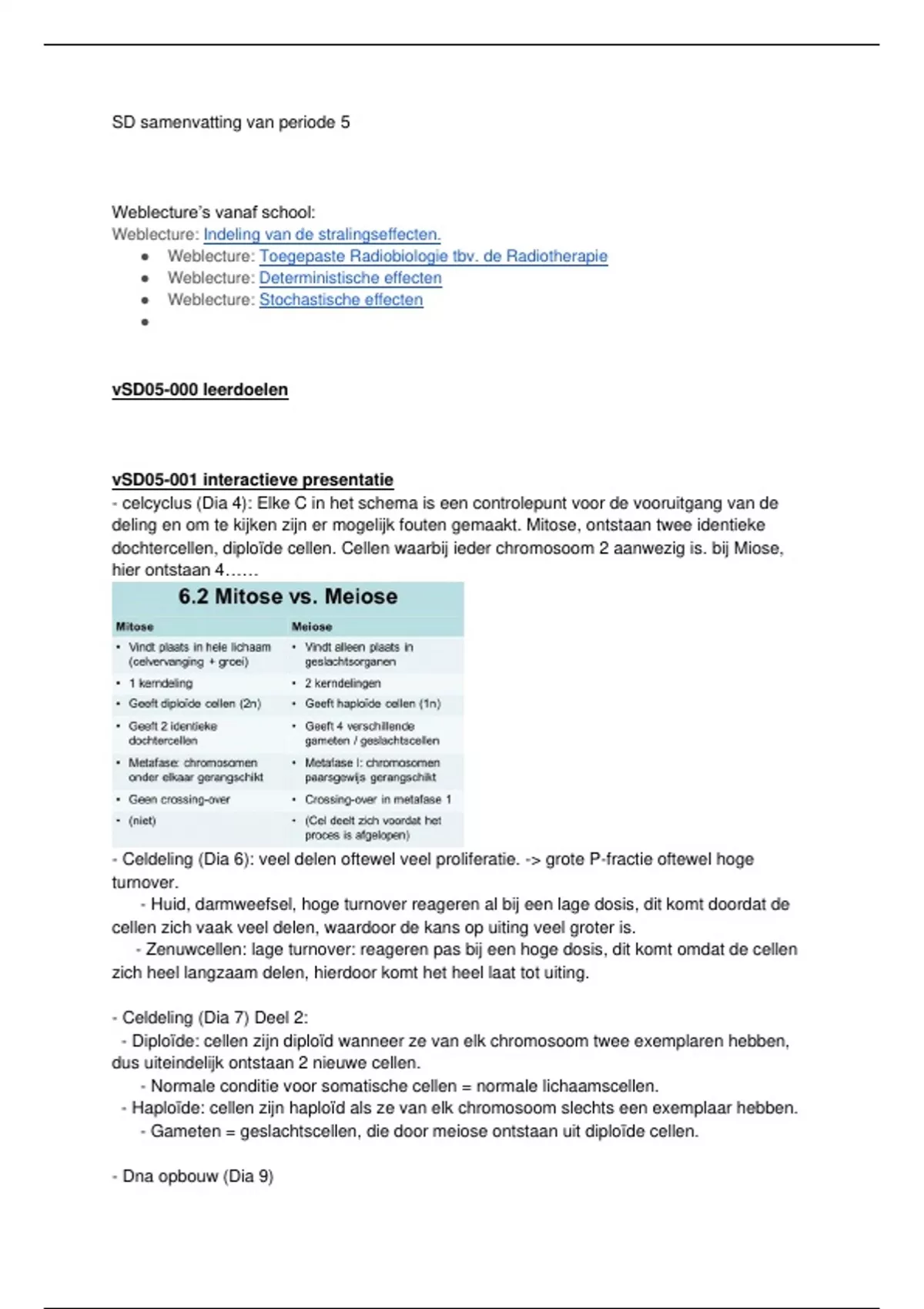 1. Mitose Dood: de deling van de chromosomen kan niet meer plaatsvinden. er