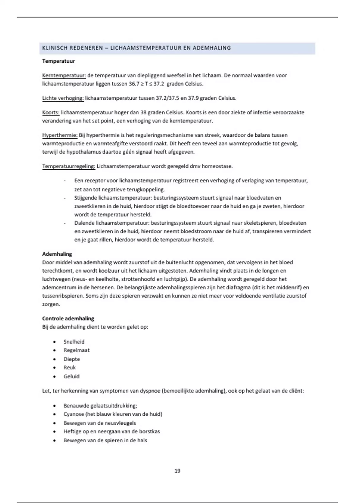 KLINISCH REDENEREN – LICHAAMSTEMPERATUUR EN ADEMHALING