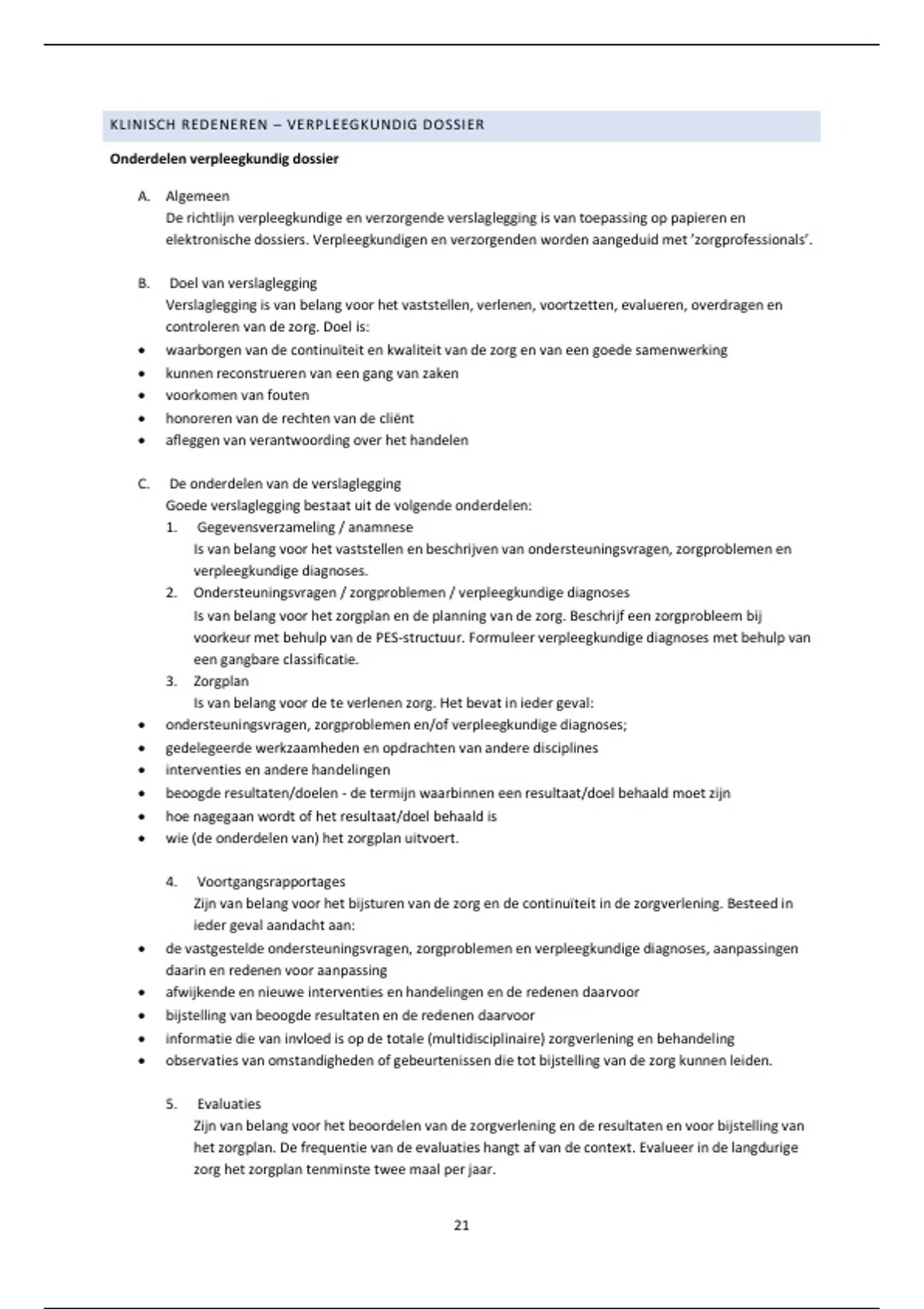 KLINISCH REDENEREN – VERPLEEGKUNDIG DOSSIER