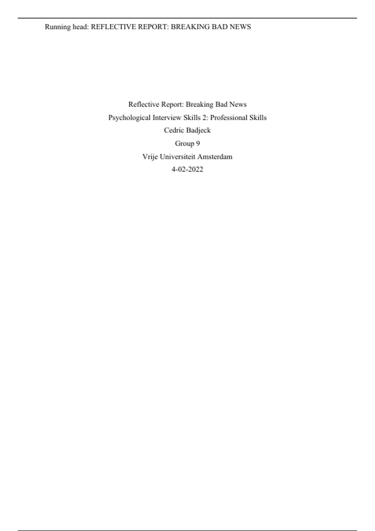 Running head: REFLECTIVE REPORT: BREAKING BAD NEWS