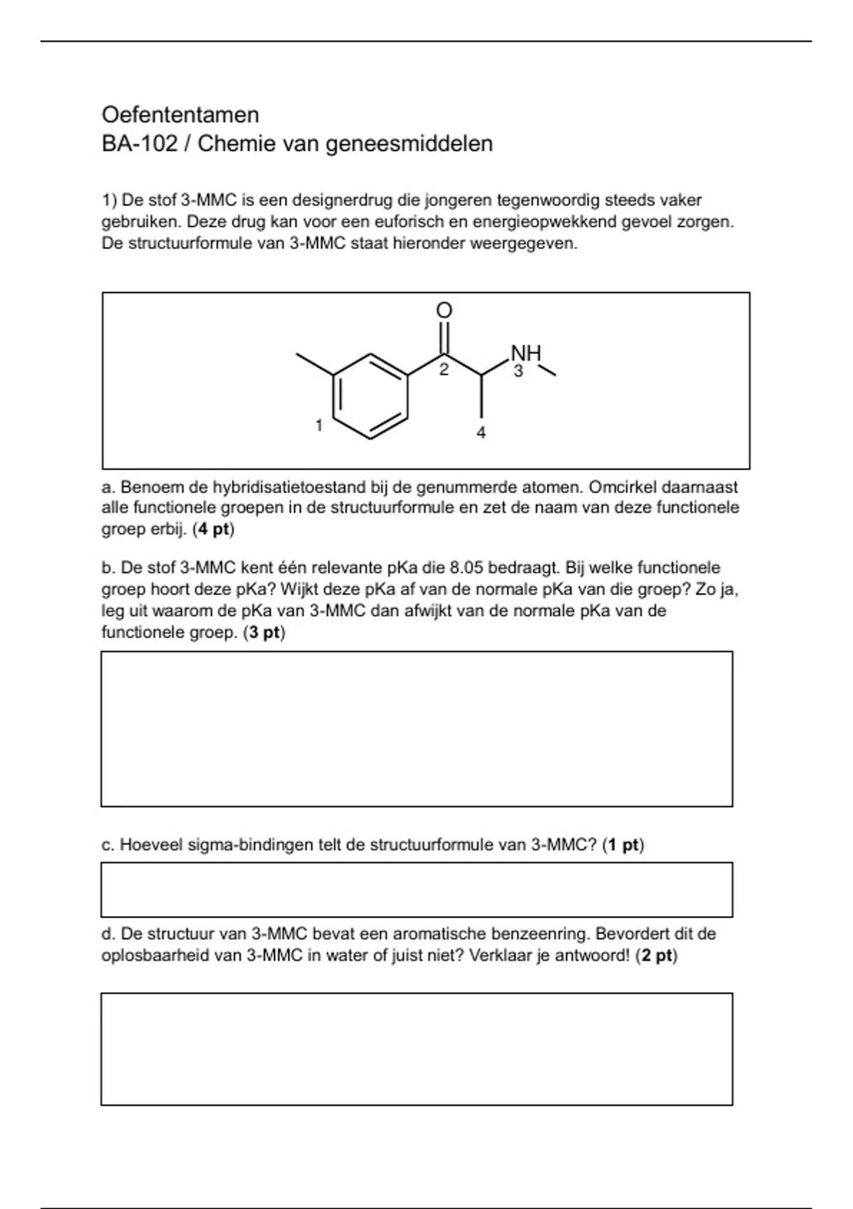 Oefententamen BA-102: Chemie van geneesmiddelen (incl antw)