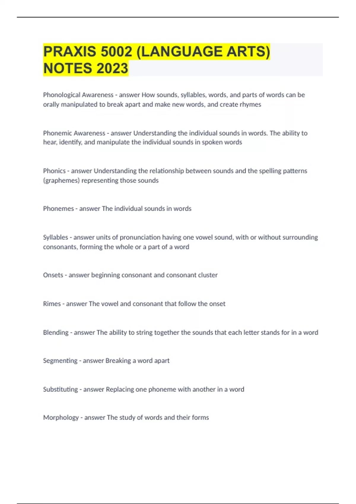 PRAXIS 5002 (LANGUAGE ARTS) NOTES 2023.