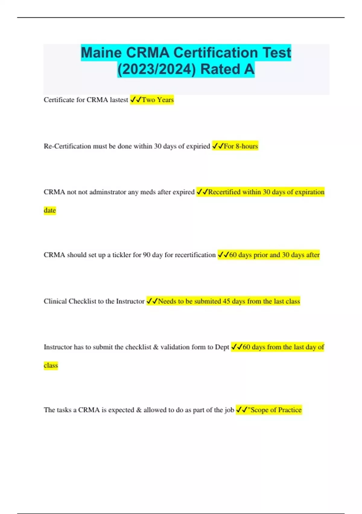 Maine CRMA Certification Test (2023/2024) Rated A