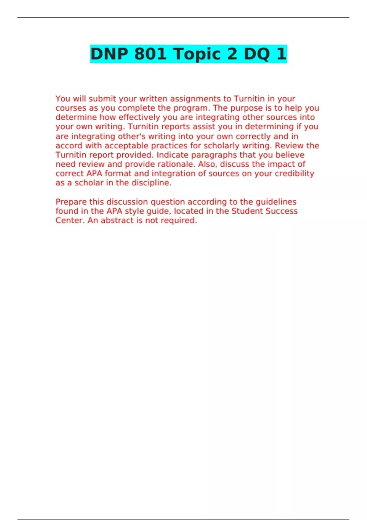 DNP 801 Topic 2 DQ 1 Correctly Answered /LATEST UPDATE VERSION/ GRADED A+