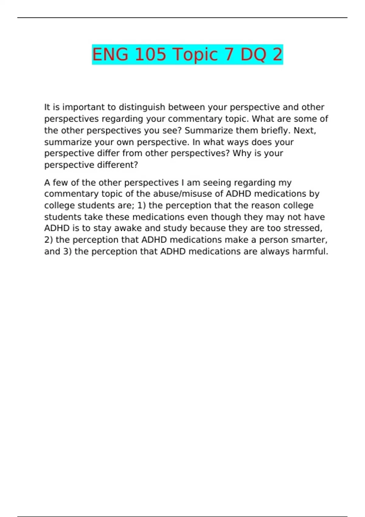 ENG – 105 Topic 7 DQ 2 Correctly Answered /LATEST UPDATE VERSION/ GRADED A+