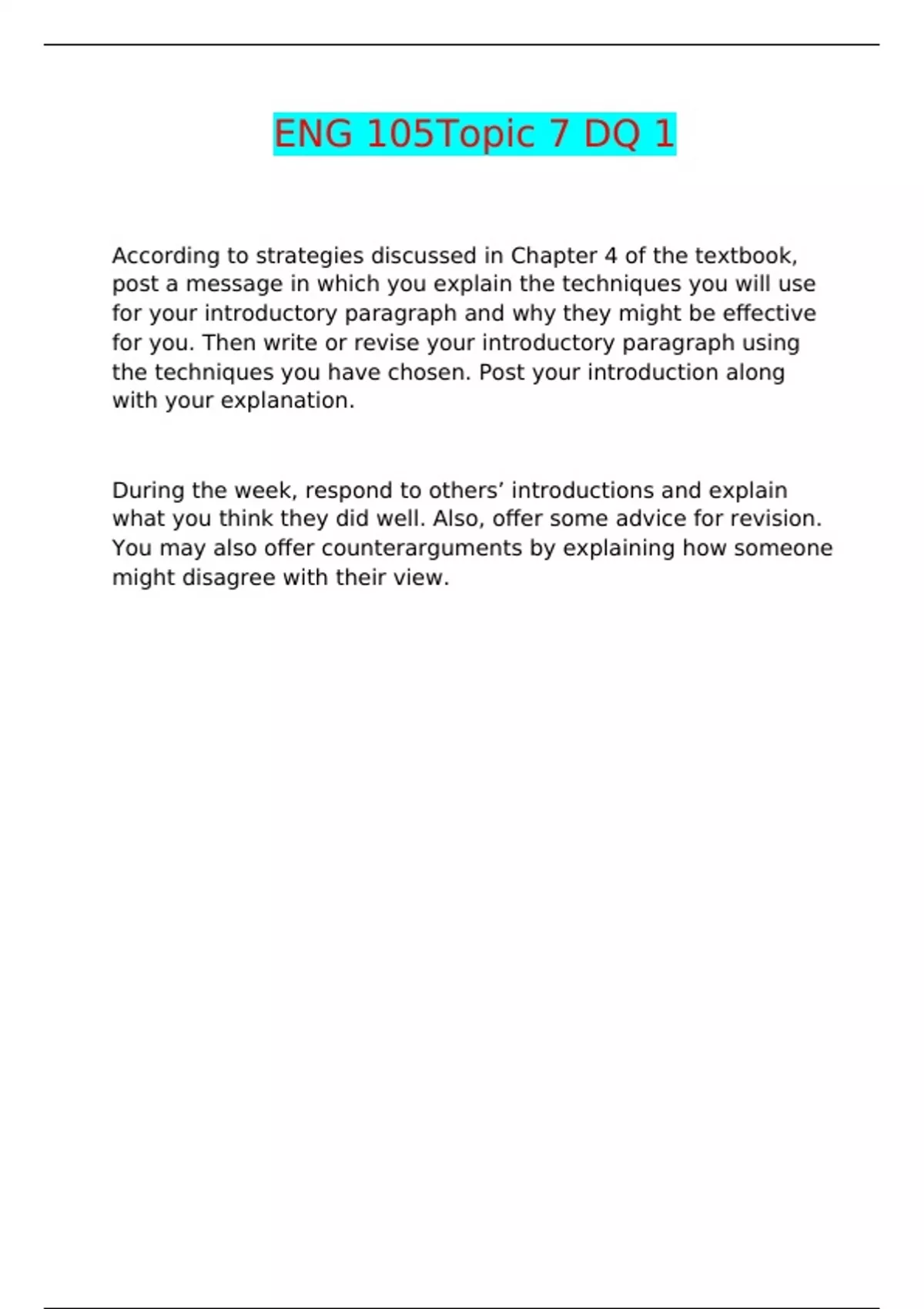 ENG – 105 Topic 7 DQ 1 Correctly Answered /LATEST UPDATE VERSION/ GRADED A+