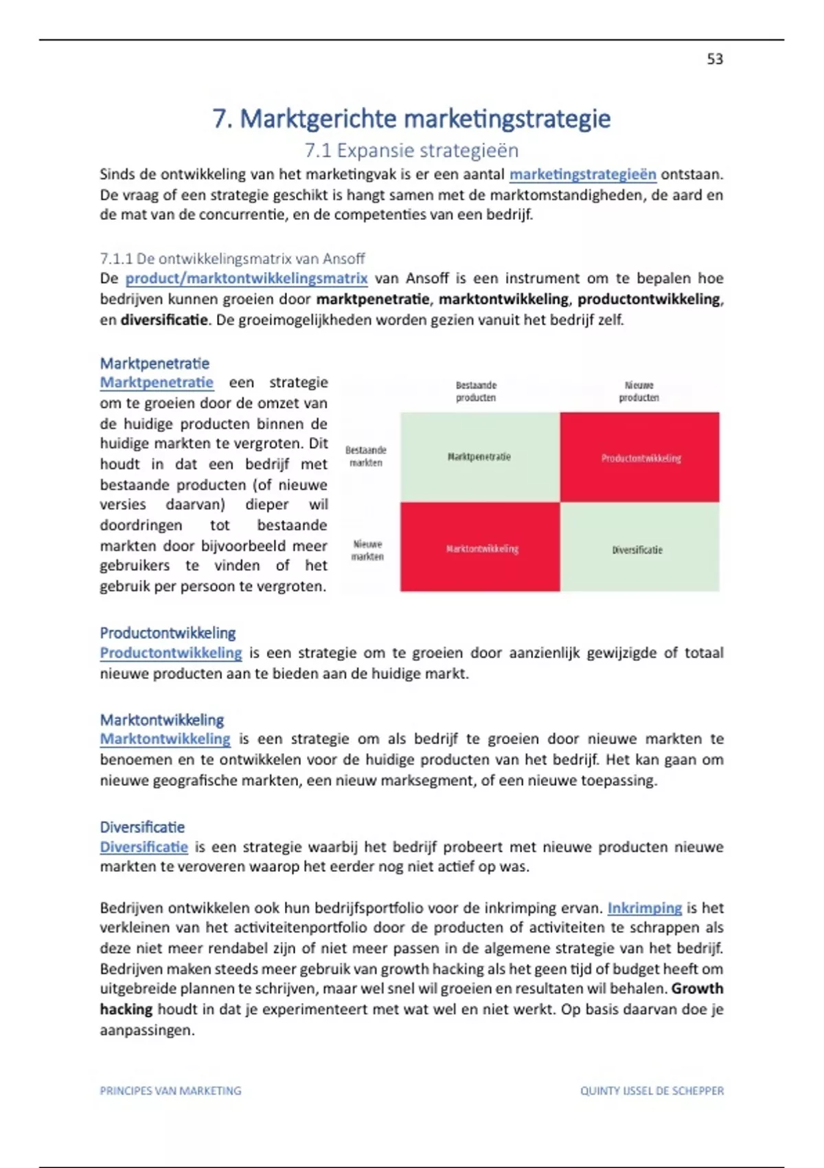 7.1.1 De ontwikkelingsmatrix van Ansoff