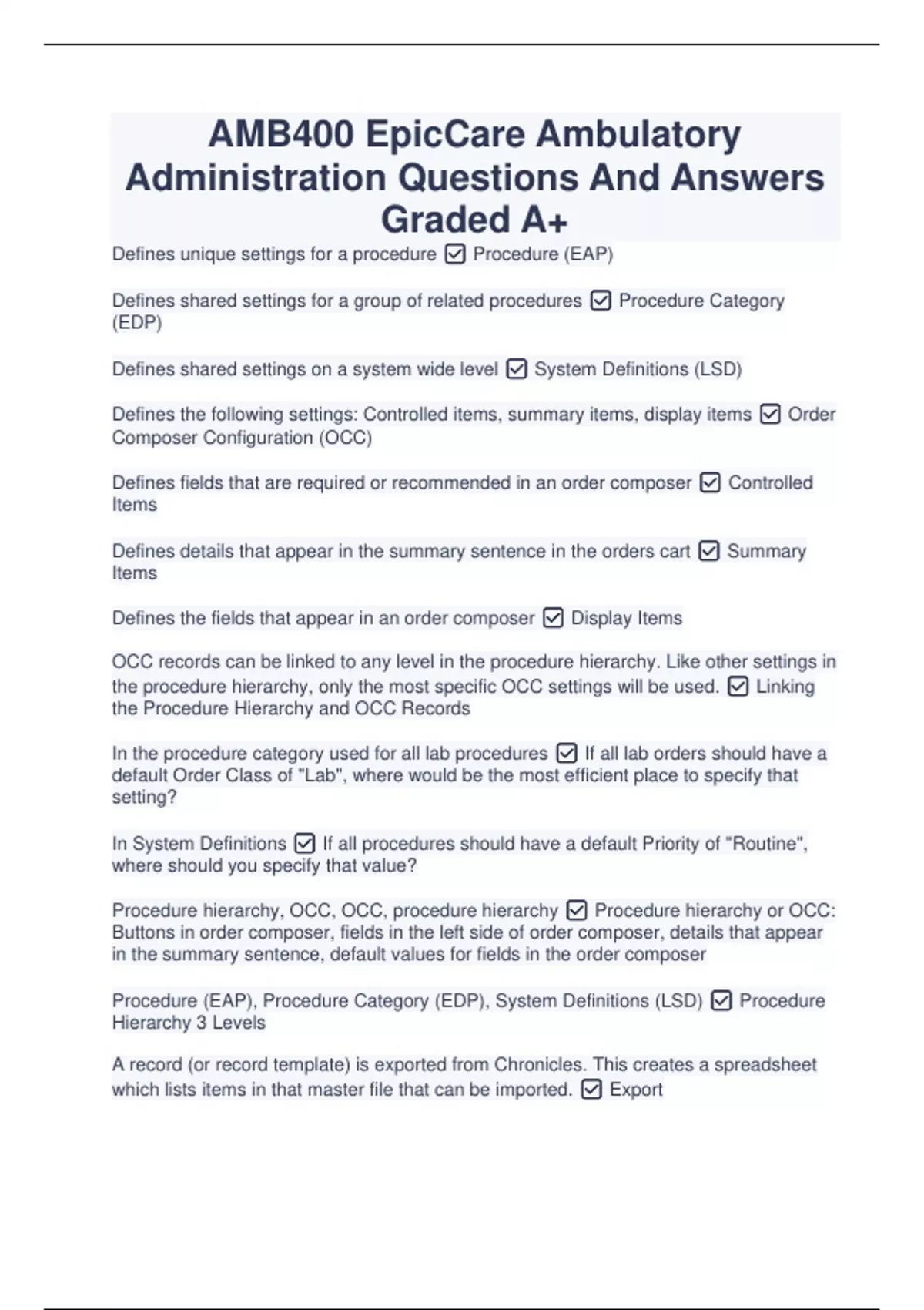 AMB400 EpicCare Ambulatory Administration Questions And Answers Graded A+