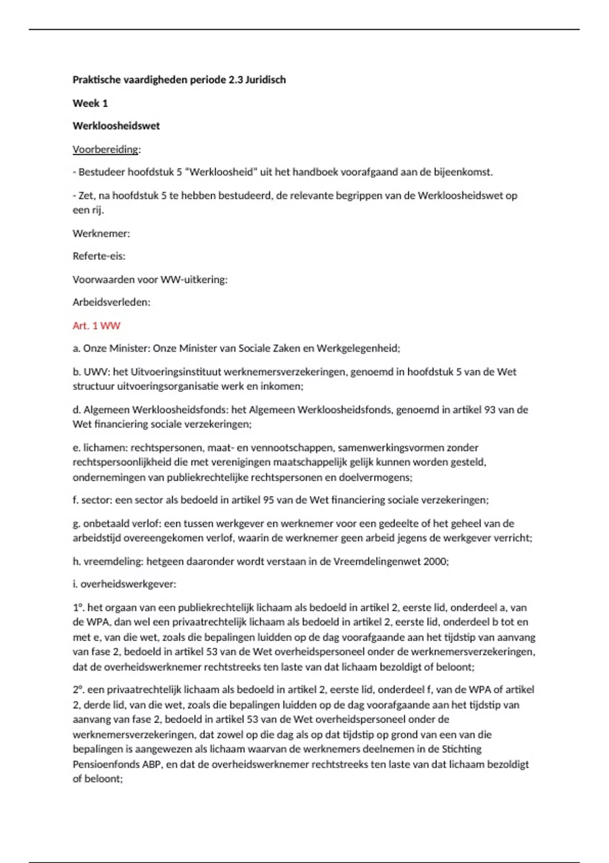 - Zet, na hoofdstuk 5 te hebben bestudeerd, de relevante begrippen van de Werkloosheidswet op