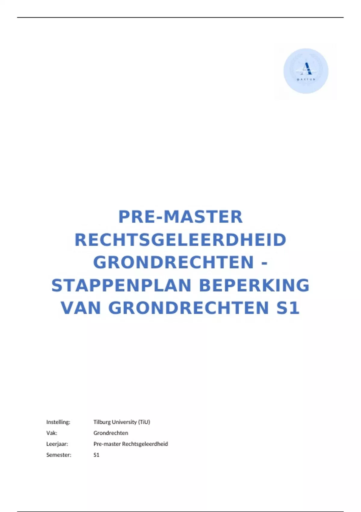 Leerjaar: Pre-master Rechtsgeleerdheid