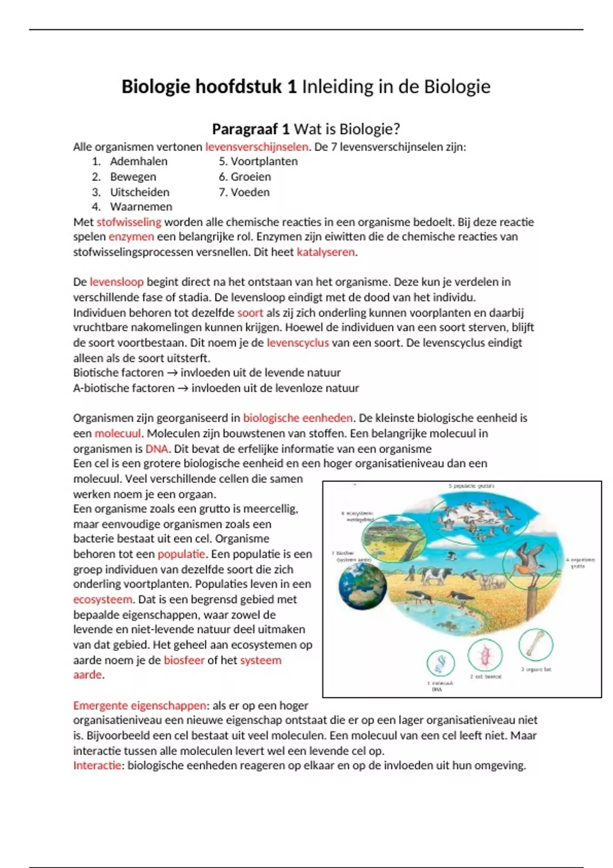 Biologie hoofdstuk 1 Inleiding in de Biologie