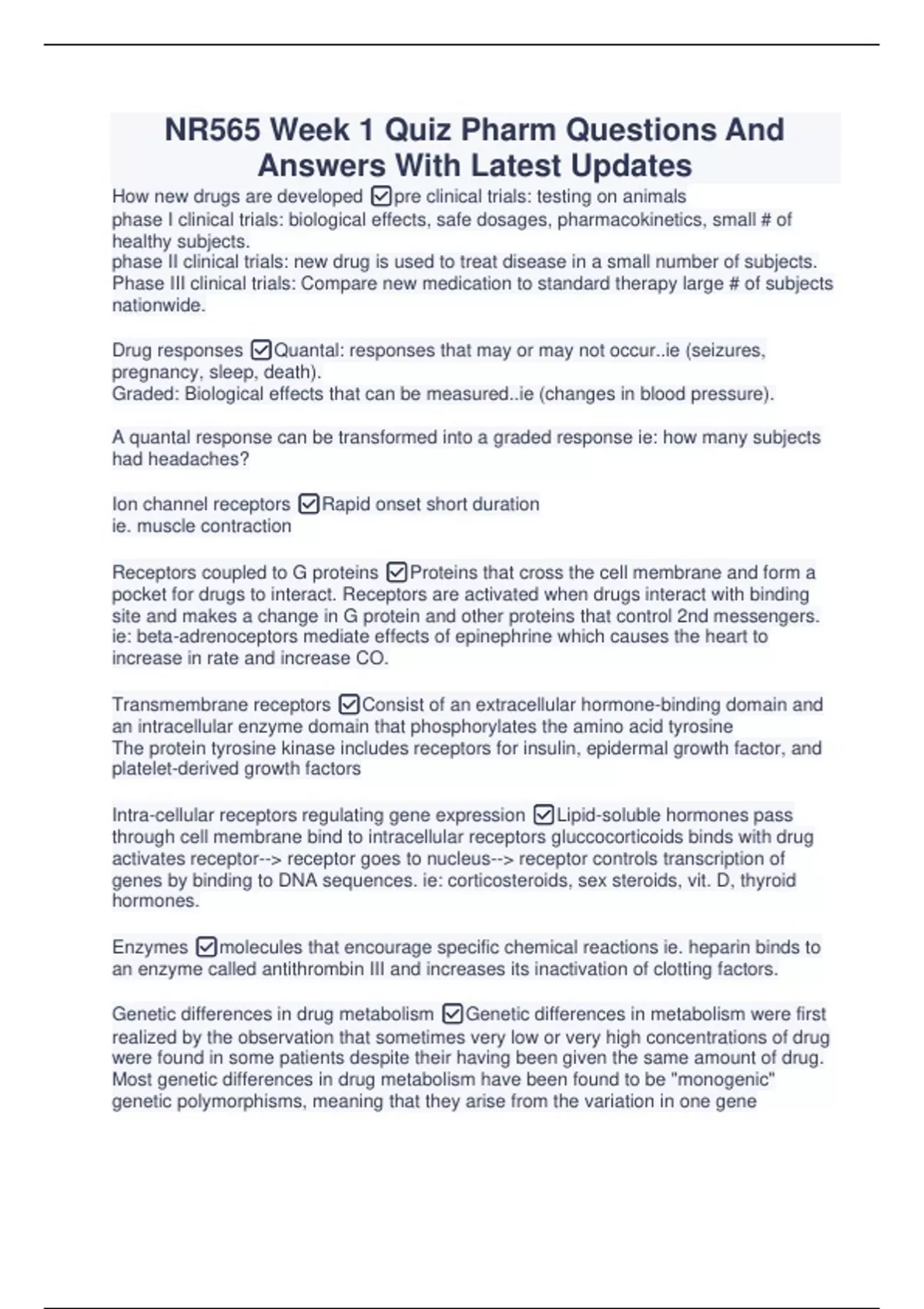 NR565 Week 1 Quiz Pharm Questions And Answers With Latest Updates NR565 Week 1 Quiz Pharm Questions And Answers With Latest Updates