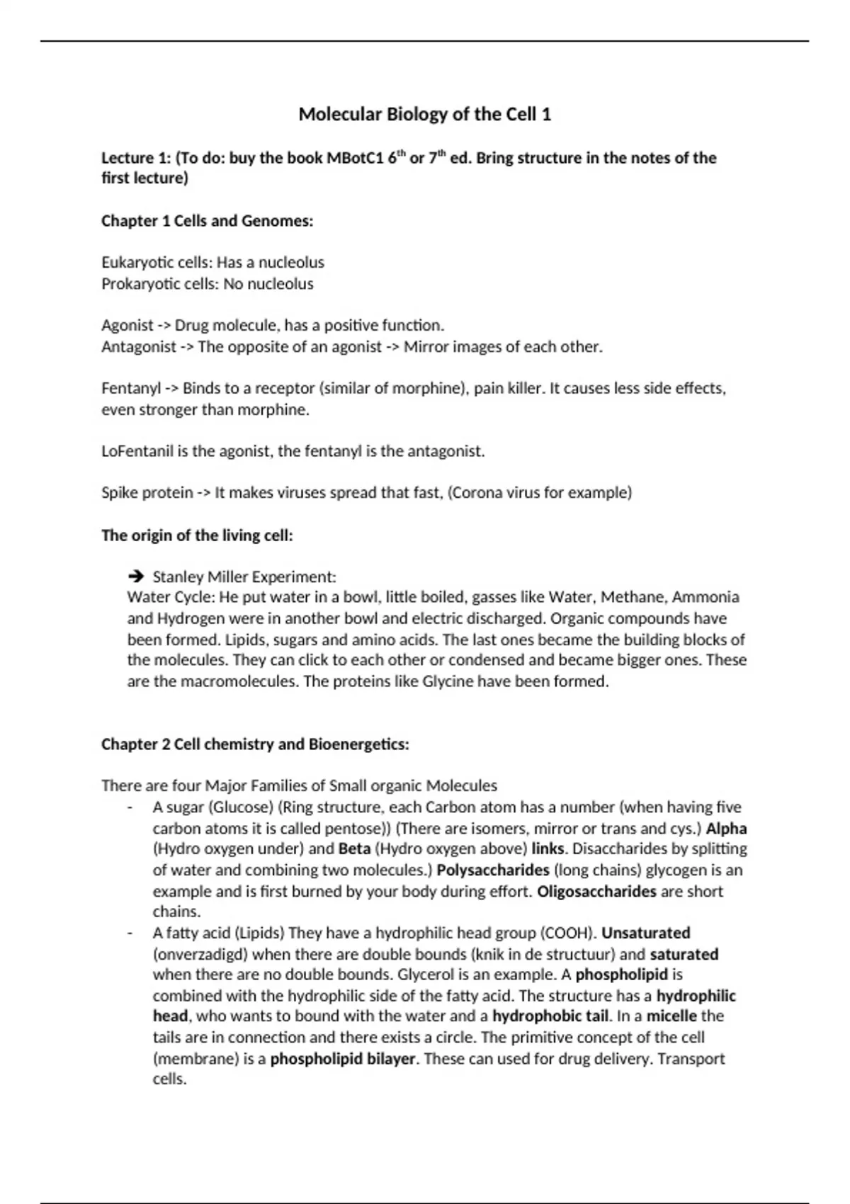 Lecture notes MBOC 1 & 2 pharmacy year 1
