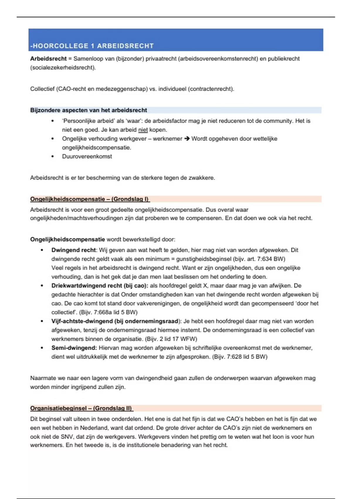-HOORCOLLEGE 1 ARBEIDSRECHT