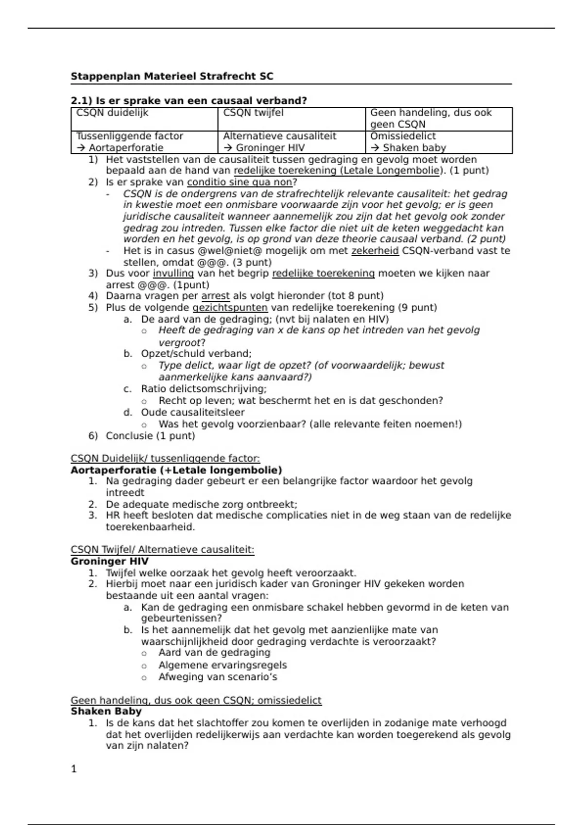 Stappenplan Materieel Strafrecht SC