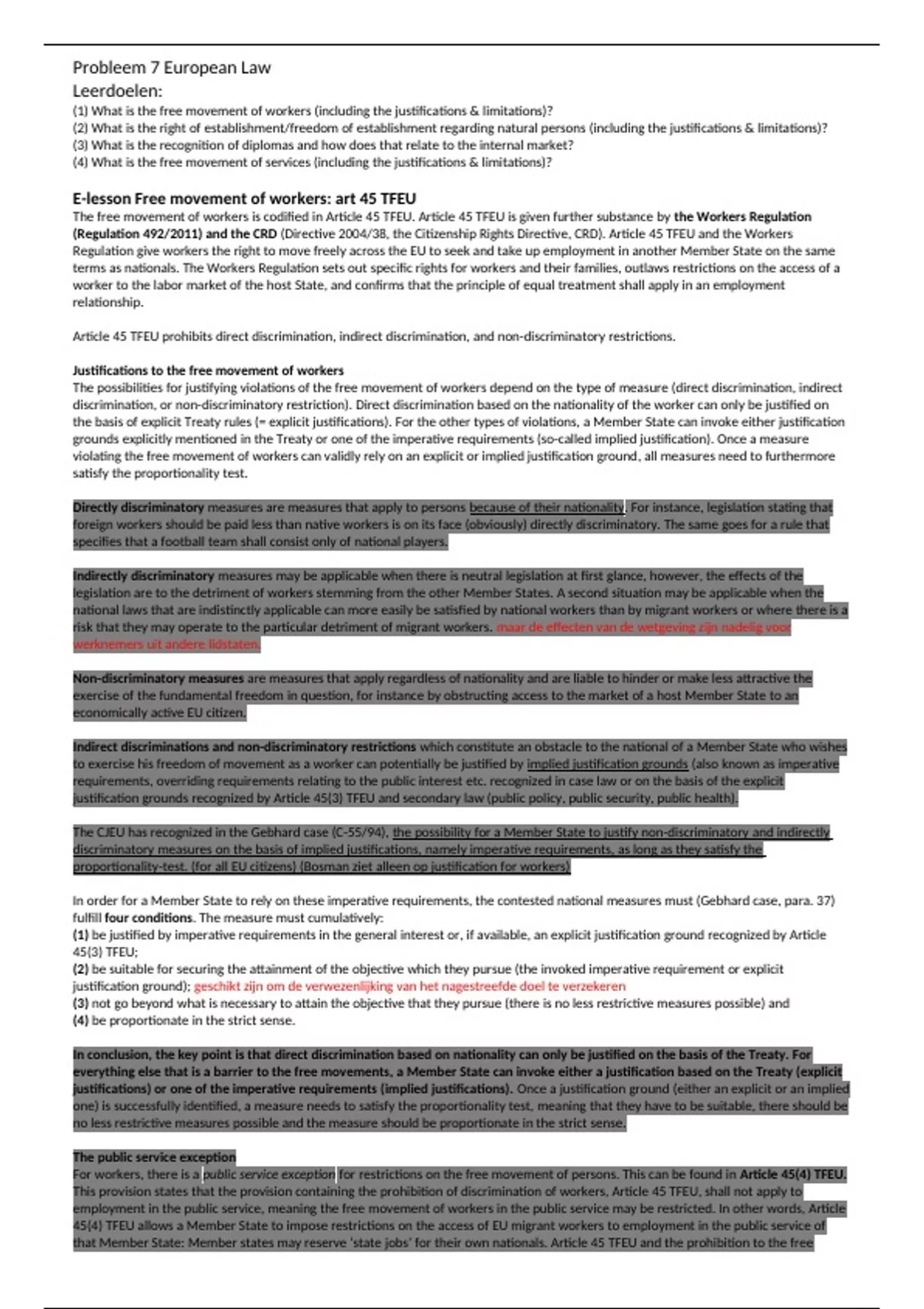 Dit zijn de uitwerkingen van European Union Law Probleem 7 Jaar 2