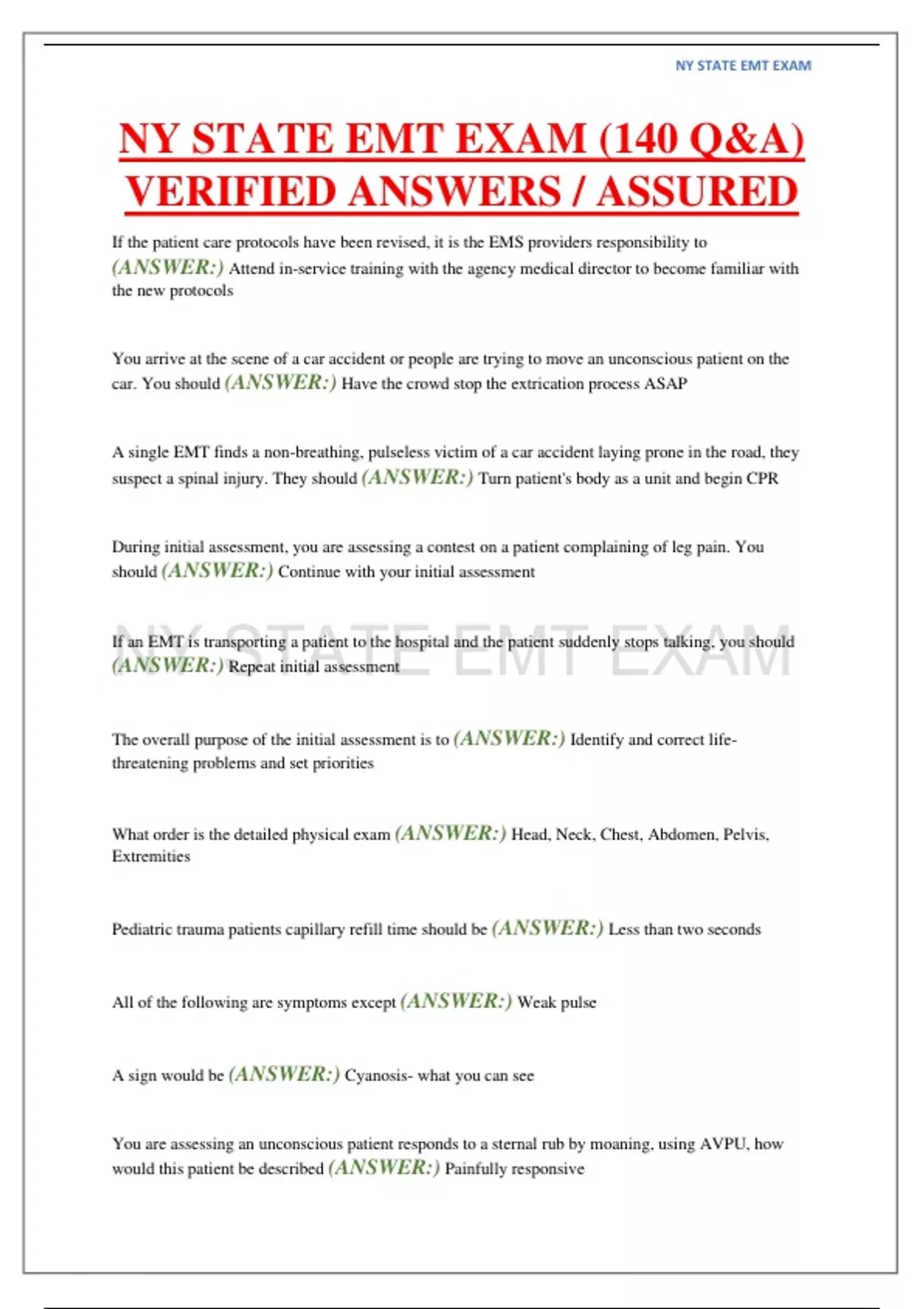NY STATE EMT EXAM (140 Q&A) VERIFIED ANSWERS / ASSURED