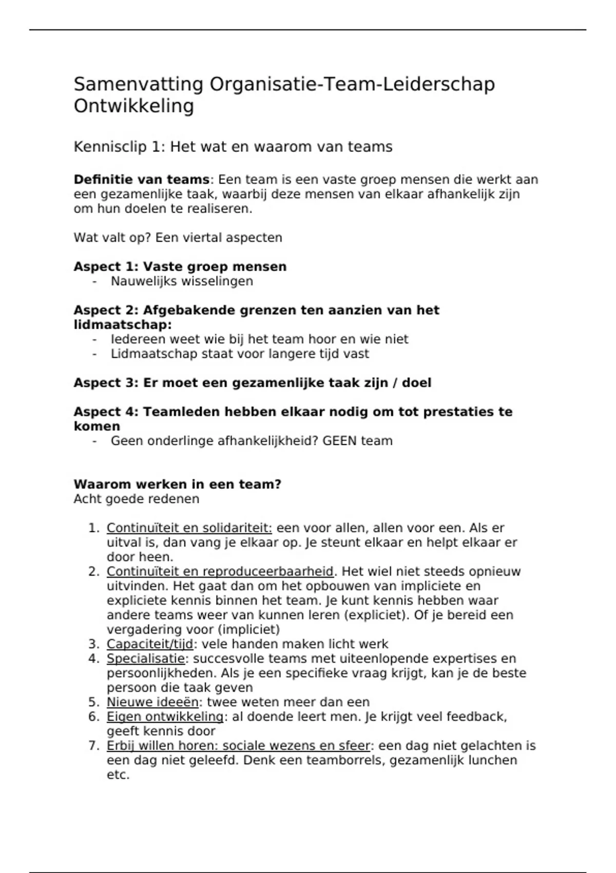 Definitie van teams: Een team is een vaste groep mensen die werkt aan