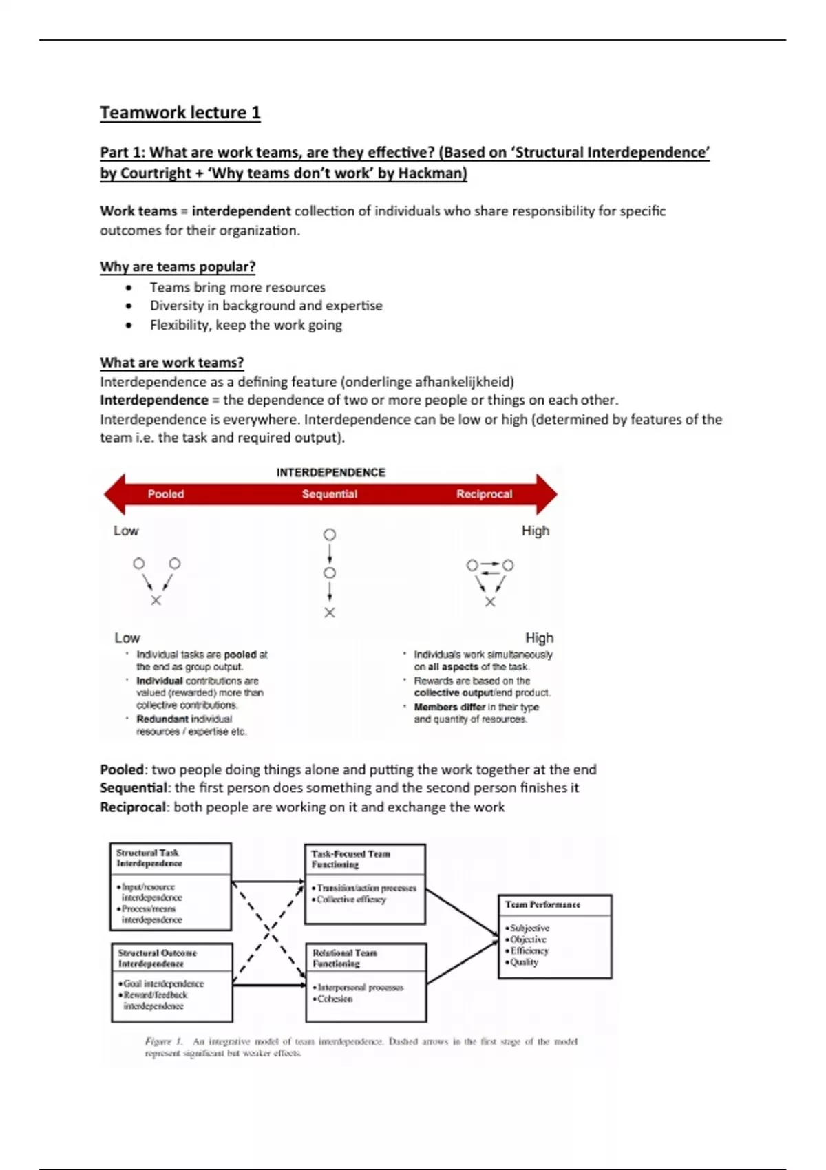 Full summary of Teamwork - Theories, Design and Dynamics RUG November 2023. Lectures + articles