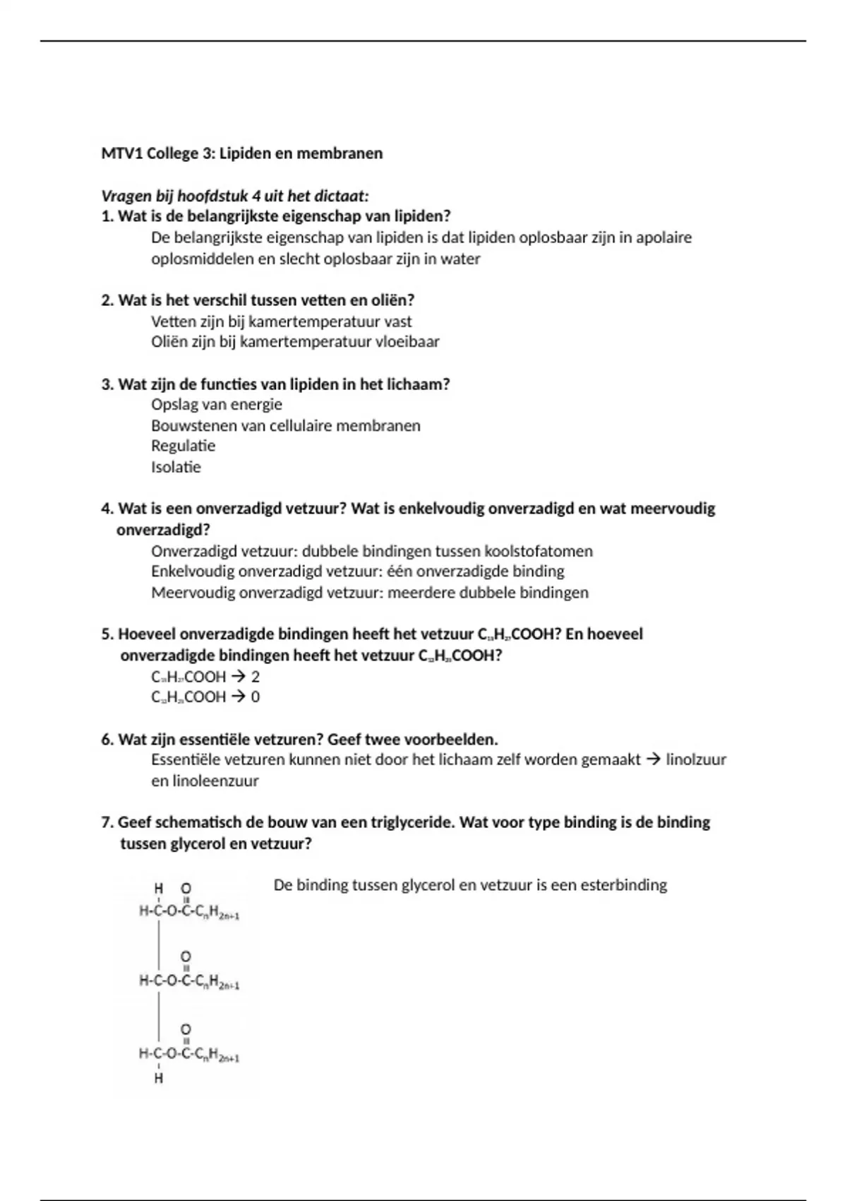 7. Geef schematisch de bouw van een triglyceride. Wat voor type binding is de binding