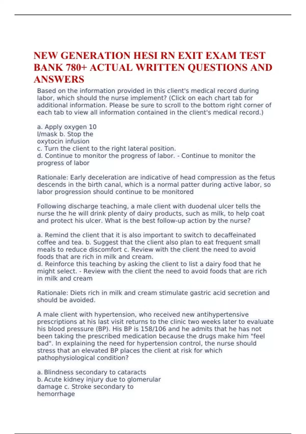 NEW GENERATION) HESI RN EXIT EXAM LATEST VERSION 2023 VERSION 1-7 WITH QUESTIONS &ANSWERS
