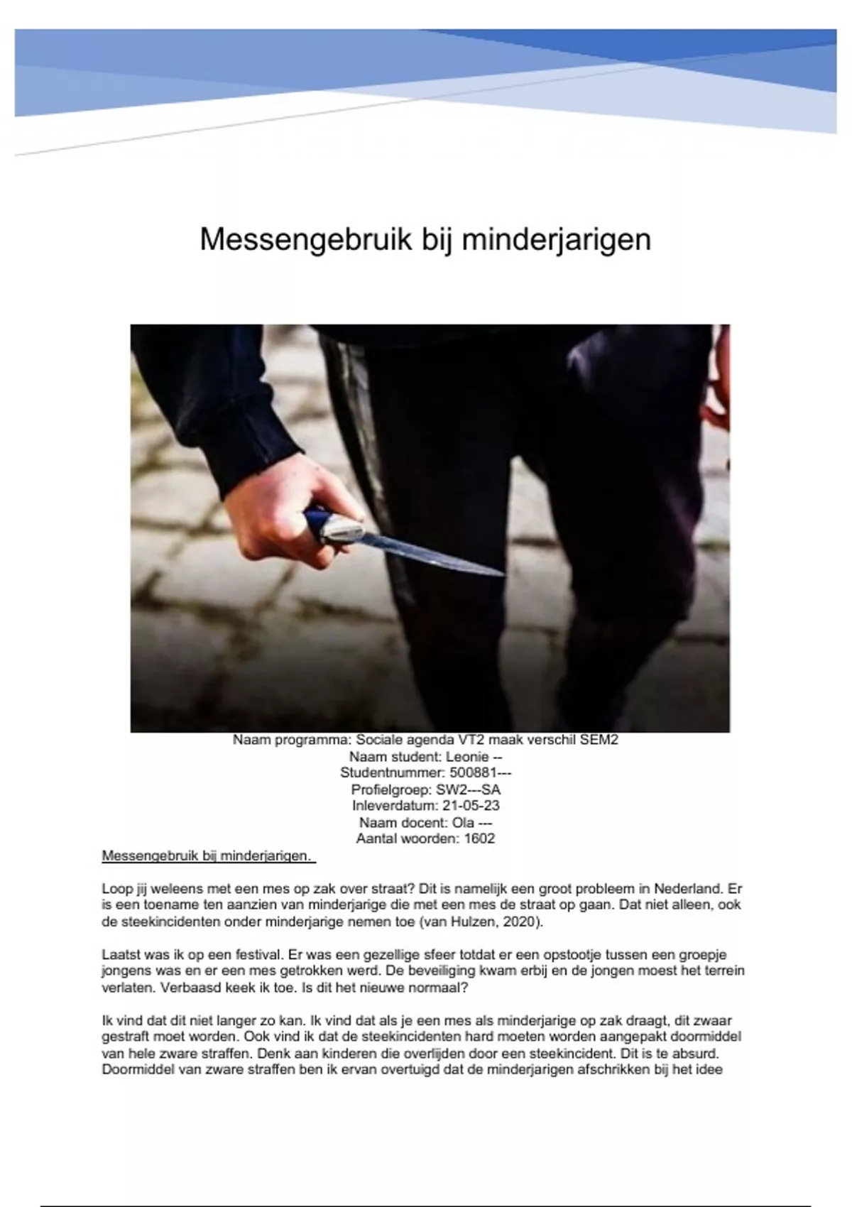 de steekincidenten onder minderjarige nemen toe (van Hulzen, 2020).